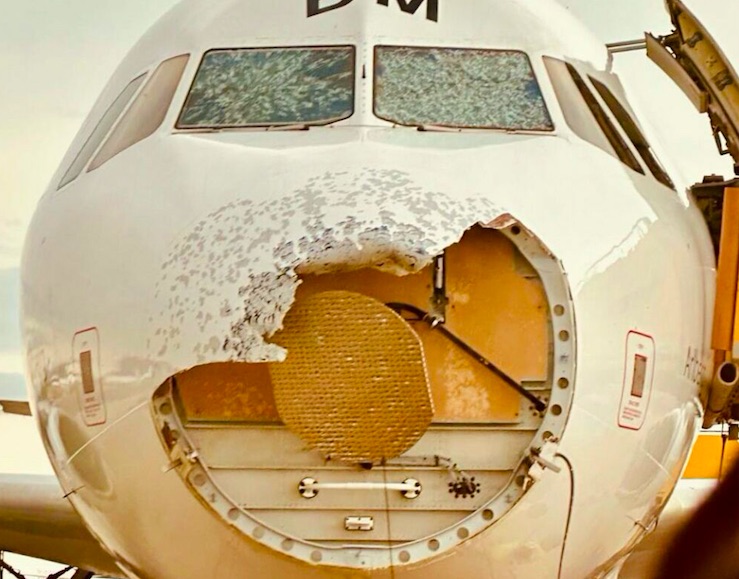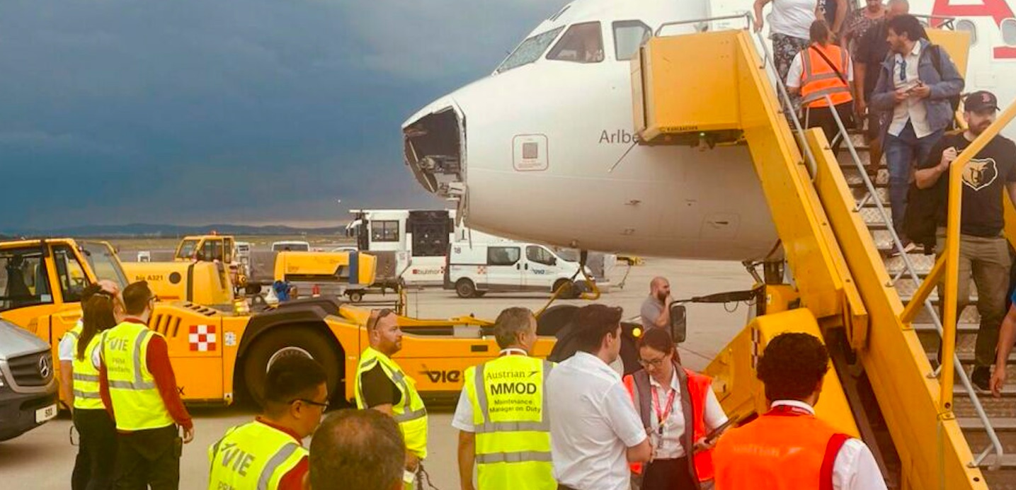 Austrian Airlines greiddi seinni frá tí, sum var hent, og orsøkin til skaðarnar var, at flogfarið hevði rent seg inn í eitt ógvusligt heglingsæl.