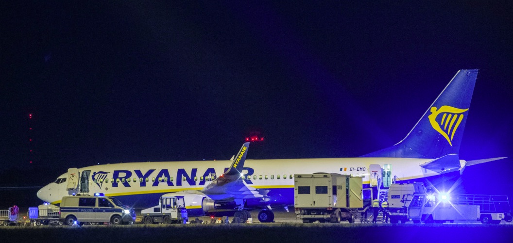 Ferðafólkini, sum vóru í Ryan Air-flogfarinum, hildu leiðina fram til Póllands í einum øðrum flogfari í nátt.