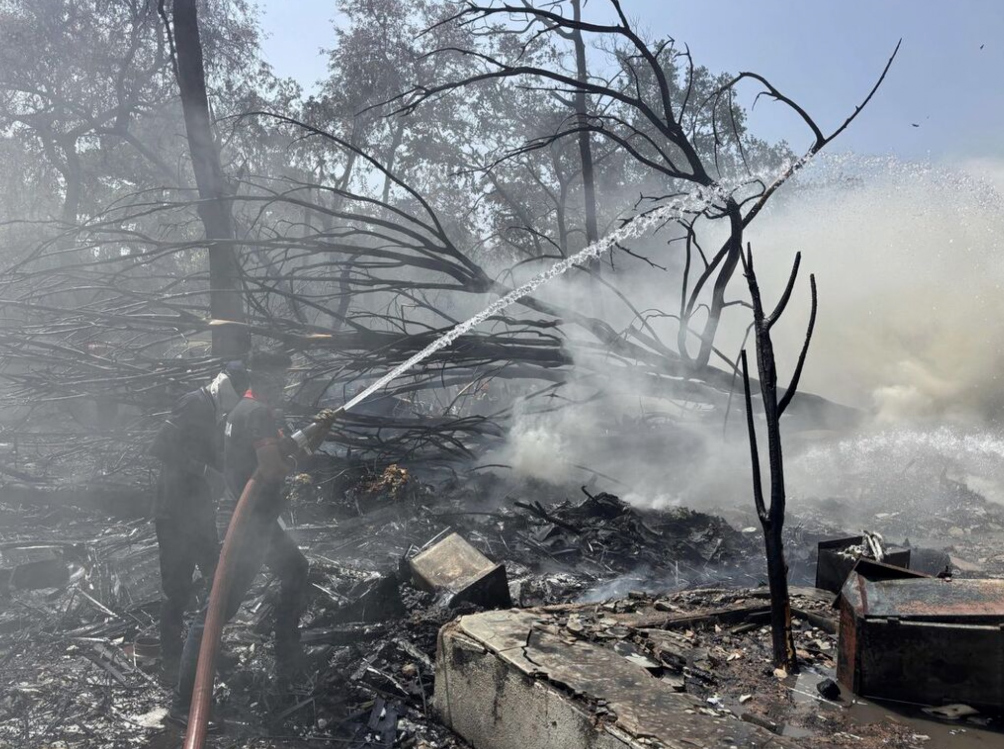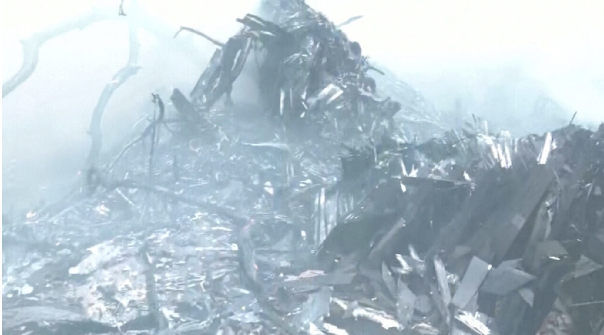 Stutt eftir fráferð, datt flogfarið niður, og filmsbrot vísa, at eldur beinanvegin kom í flogfarið. Her sæst eisini, hvussu sløkkiliðsfólk royna at sløkkja ógvusliga eldin.