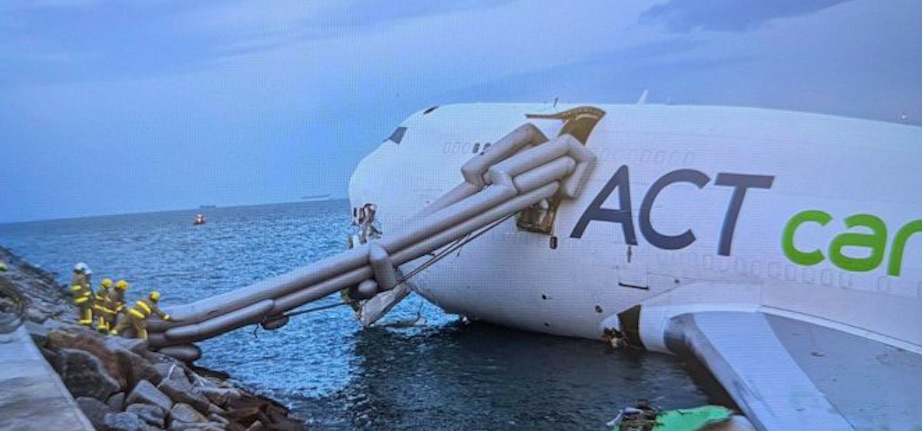 Sambært ávísini, South China Morning Post, rakti flogfarið, sum var í ferð við at lenda, eitt akfar, sum endaði á sjónum.