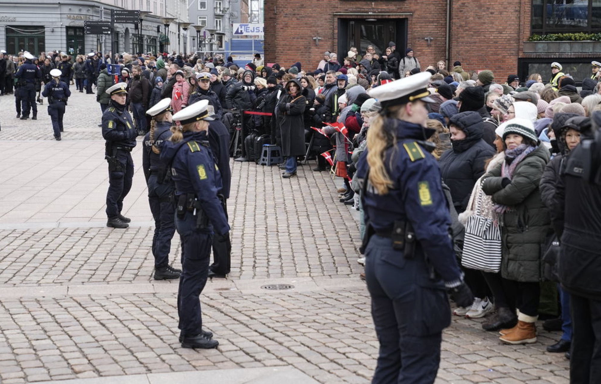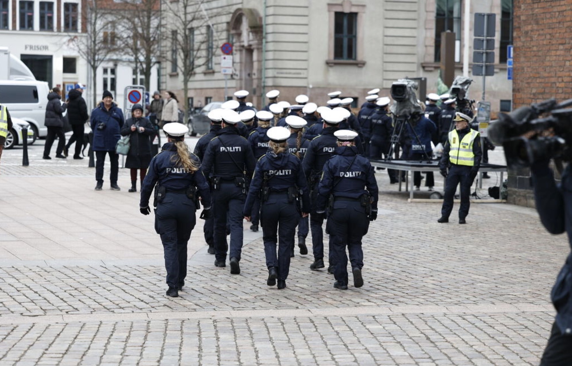 Nógv løgregla hevur verið at sæð í gøtunum í Aarhus í sambandi við, at kongshjúnini vitja í býnum og eru í krikju.