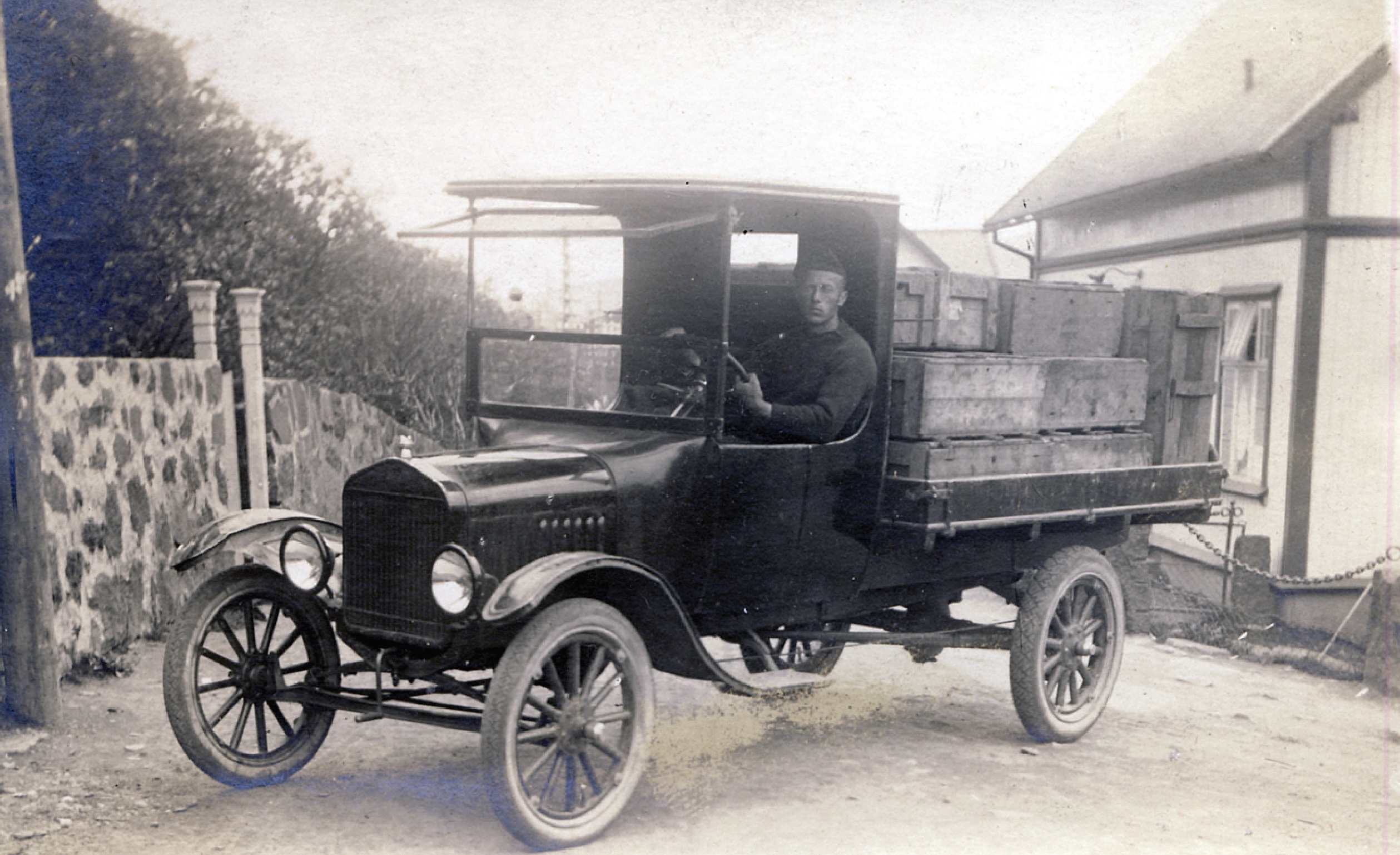 Og soleiðis bleiv tað hann sum lærdi teir fyrstu havnarmenninar – og harvið føroyingarnar – at koyra bil.