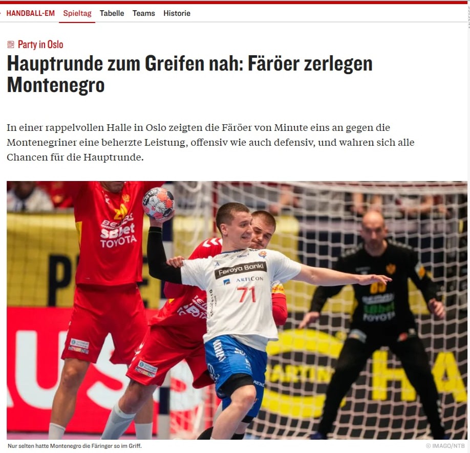 Føroyska hondbóltsbragdið, fyrsti EM-endaspælssigurin nakrantíð, 37-24 (19-12) stórsigurin á Montenegro gevur endurljóð í miðlum kring Evropa.