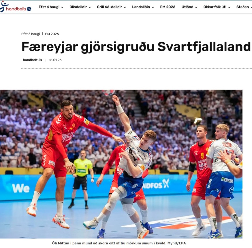 Í Íslandi staðfesta Morgunblaðið og Vísir eisini ein søguligan føroyskan sigur, meðan handbolti.is skrivar, at Føroyar knústu Svartfjallaland (Montenegro):