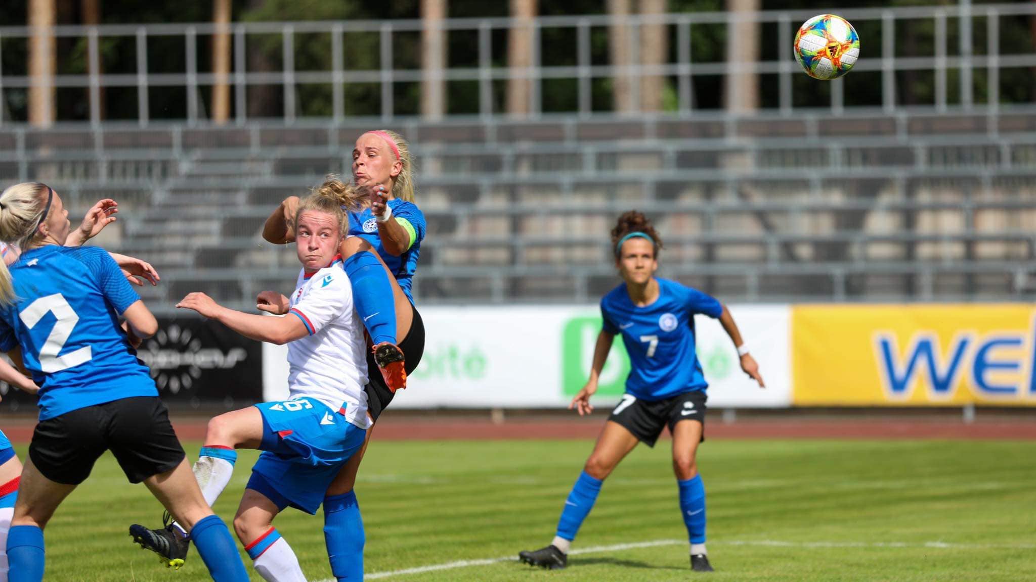 Estland javnaði í seinna hálvleiki við langskoti eitt sindur úr vinstru. Bólturin sigldi høgt í handaru síðu av málinum.