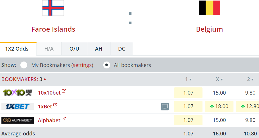 Miðaloddsini upp á belgiskan útisigur eru so høg sum 10,80.