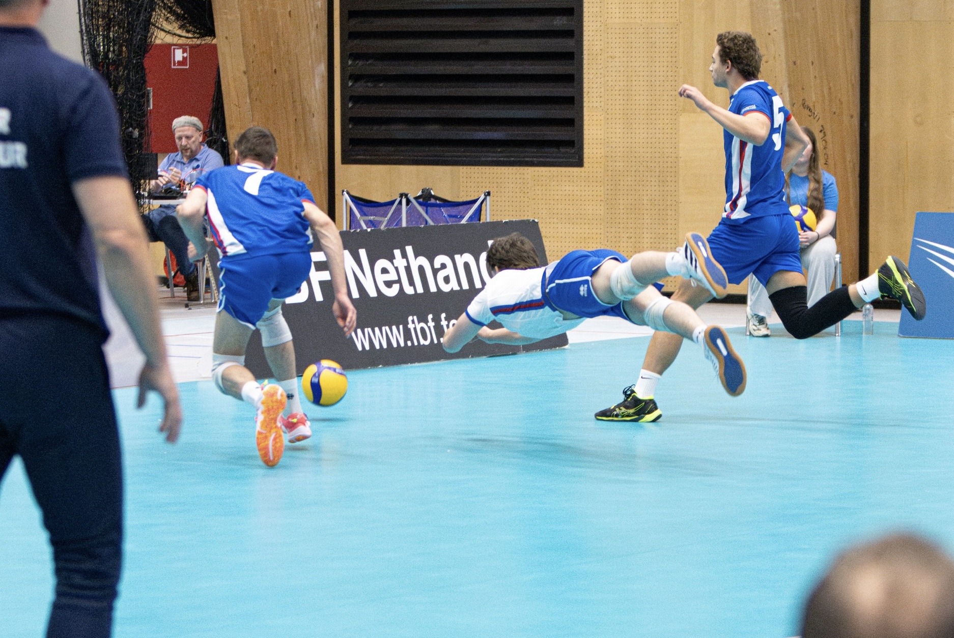 Harvið var finaluplássið gloppið Føroyum av hendi, men ikki høvdu Føroyar givið skarvin yvir at vinna dystin. Danmark legði seg á odda við fýra stigum í øðrum setti, 16-12 og 18-14, men Føroyar bardu seg upp á javnleik 20-20 og fóru eisini framum 22-21 og 24-23. Danir hóraðu tó undan settbóltinum og vunnu ístaðin 26-24.