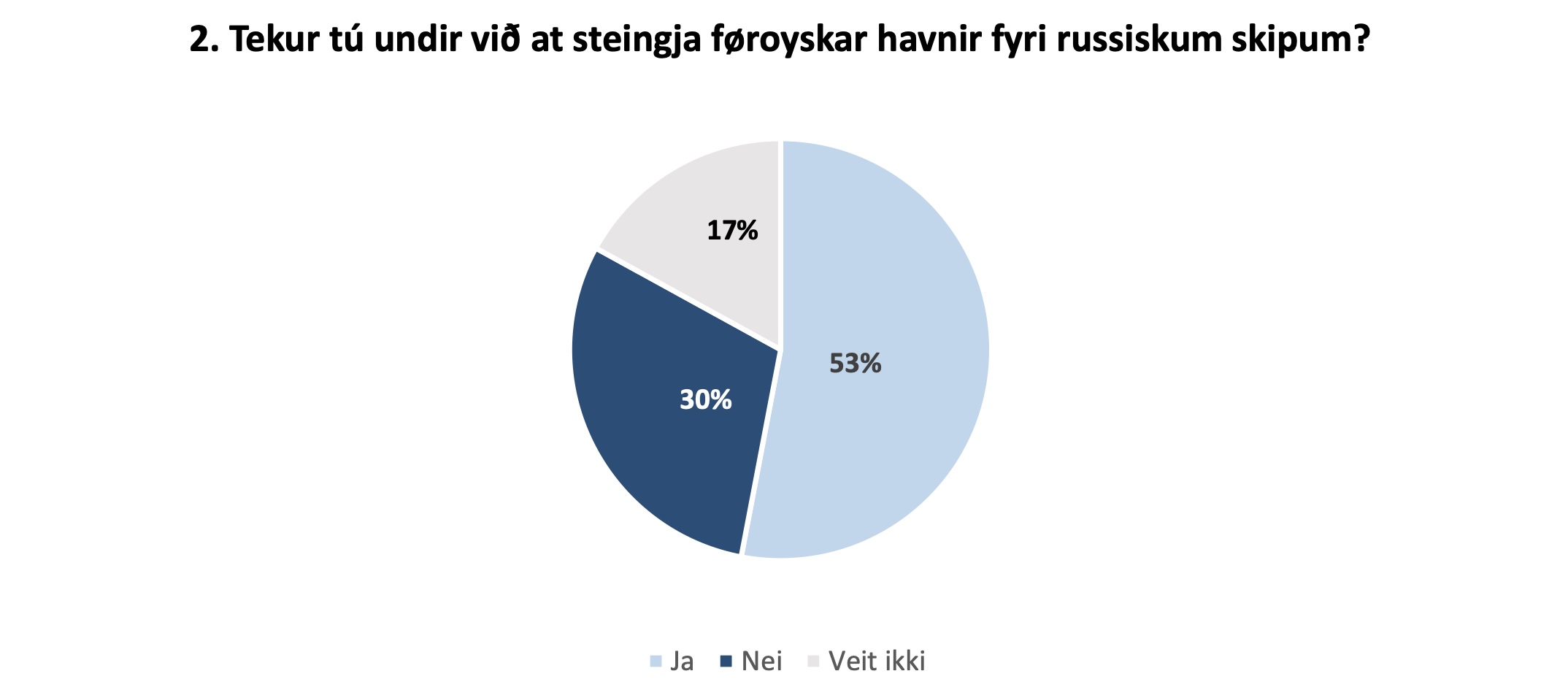 Kanningin vísir, at ein meiriluti av føroyingum eru fyri at steingja føroyskar havnir fyri russiskum skipum og at fyribils forbjóða útflutningi til Russlands.