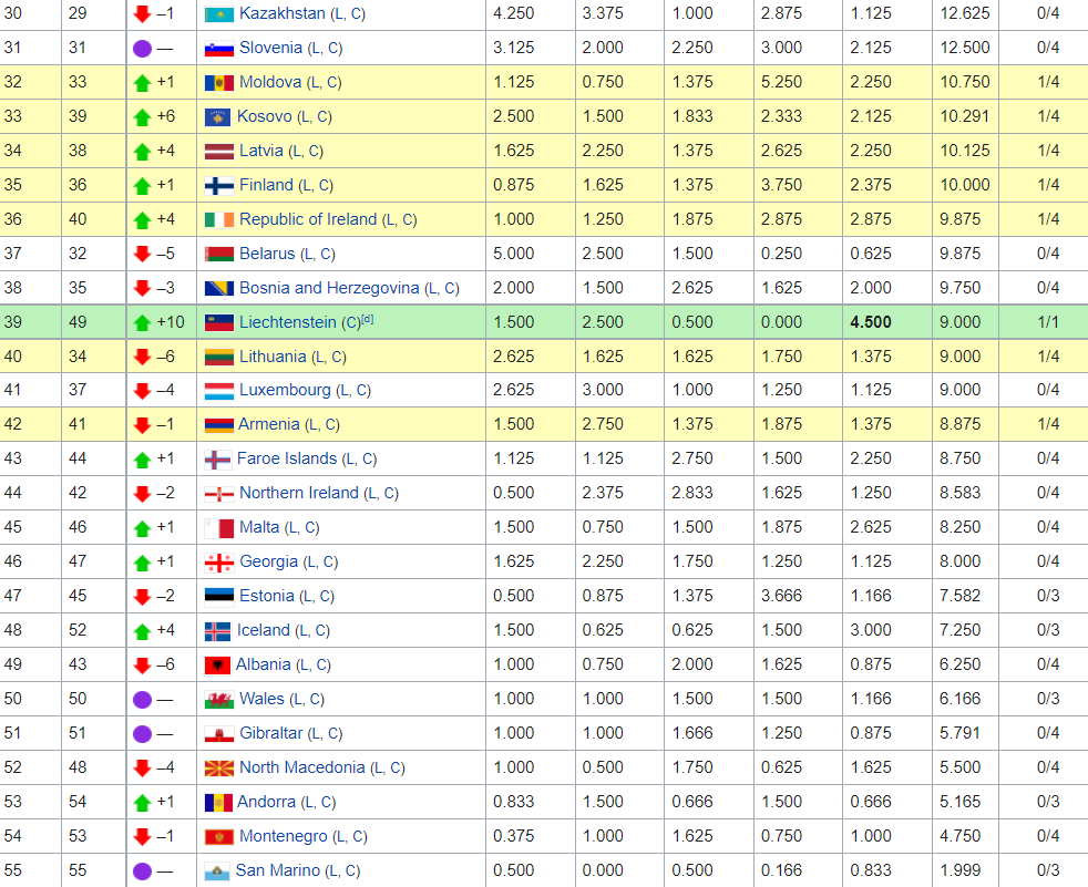 UEFA Ranking stig úrtøkan hjá okkum fyri seinastu fimm árini er 8.750. Vit eru beint aftanfyri Litava, Luksemborg og Armenia, men Litava og Armenia hava lið við í bólkaspælinum í Europa Conference League, so tey fara helst at draga frá okkum.