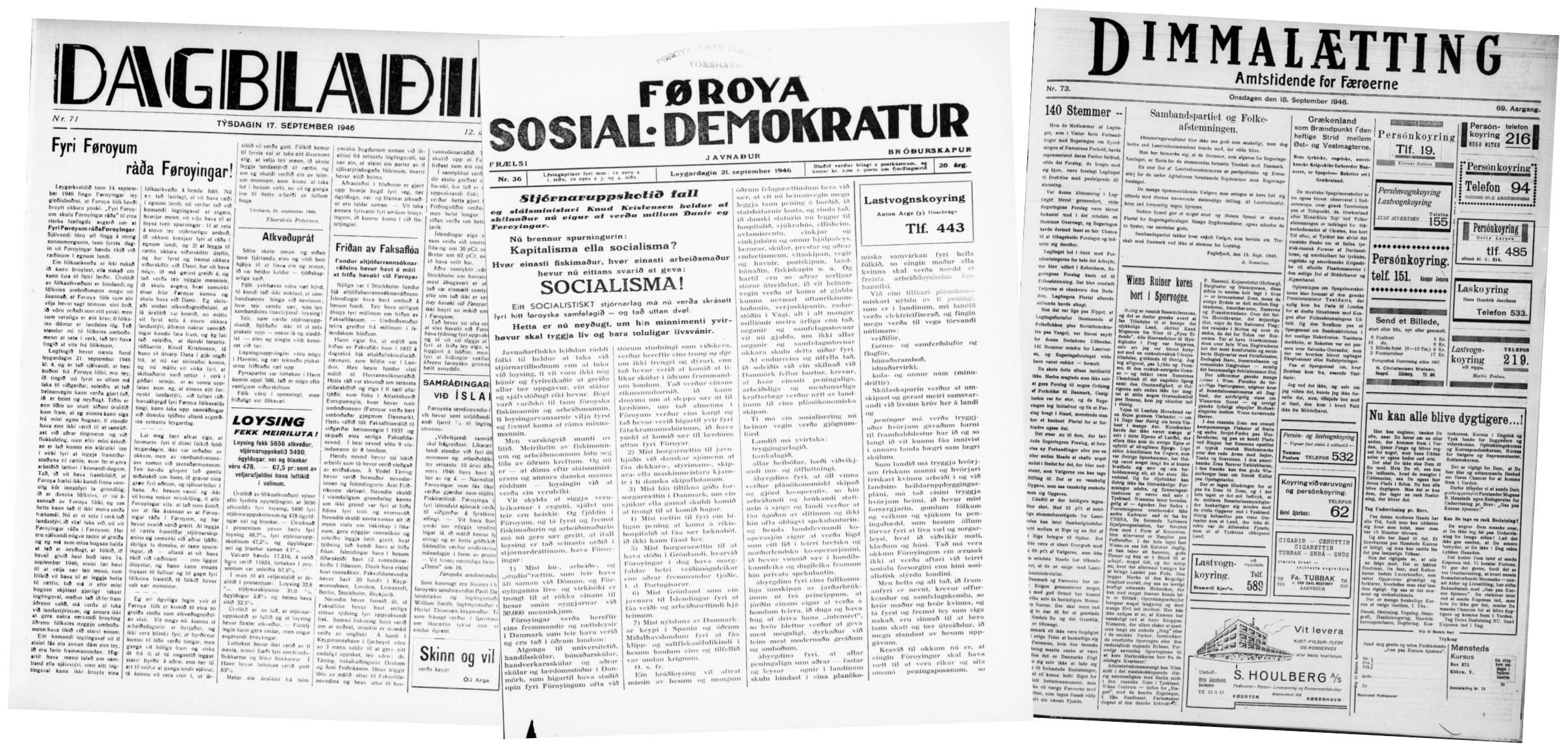 Endamálið hjá donsku stjórnini var at tað skuldi liggja verri fyri at fegnast um tann sigur sum meirilutin av veljarunum og løgtingið sjálvt vann tann 14. september 1946, og sum vit framvegis hava fyri at takka, at okkara 18 ára gomlu ikki hava herskyldu og og sleppa undan tí vanlagnu at verða send í fjar lond at lata lív um tað hóvar donsku stjórnini.