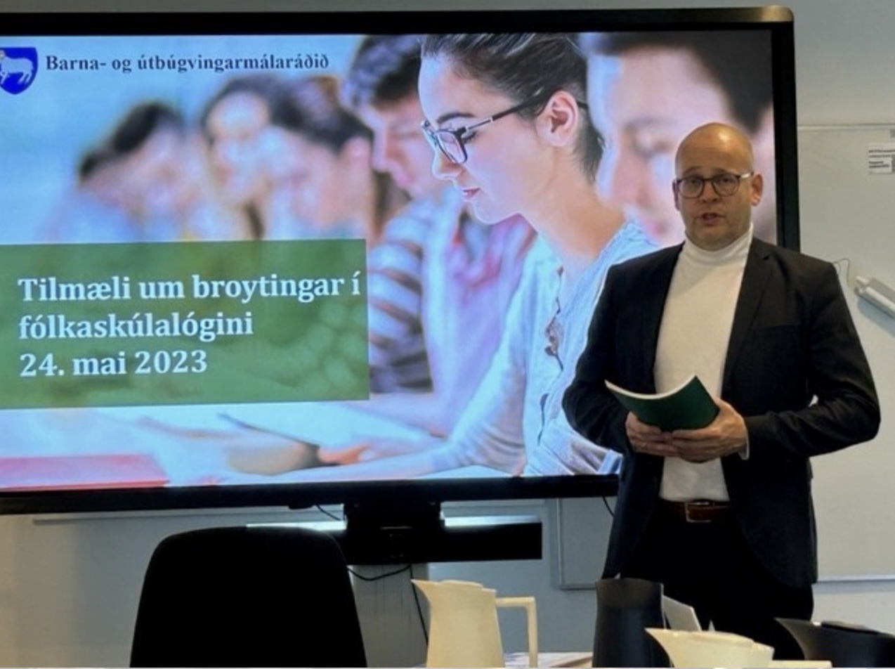 Í dag, 24. mai 2023, var tilmæli um broytingar í fólkaskúlalógini handað landsstýrismanninum í barna- og útbúgvingarmálum, Djóna Nolsøe Joensen. Tilmælið viðger grundleggjandi viðurskifti í okkara fólkaskúlaskipan við atliti at næmingatalinum í flokkunum, tíma- og lærugreinaskipanini, tvílæraraskipanini við denti á samlæring, longdina á skúladegnum, at skipa ein fjølbroyttan skúladag og undirvísing og frælsið hjá skúlunum at leggja til rættis.