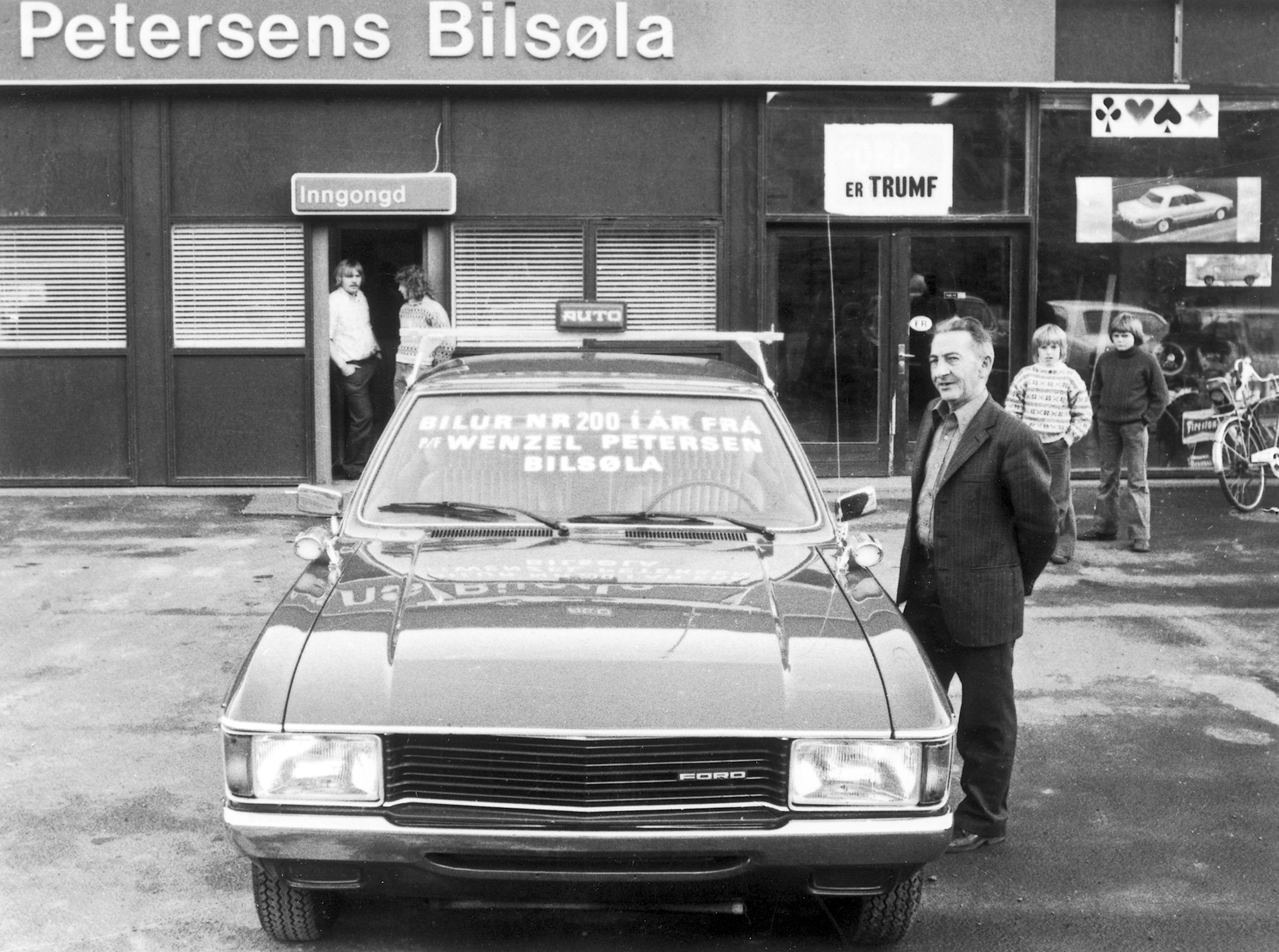 Bilasøguliga, so hevur Ford eina serliga støðu í Føroyum. Tí Ford var fysti bilur í Føroyum. Tað var hesin Ford TT lastvognur frá 1922, sum sæst høgrumegin. Hann kom til landið 6. mai í 1922. Tað vóru Johannes Olsen og Júst Sviertsen, sum keyptu hann gjørgnum føroyska Ford-umboðið, sum tá vóru Vilhelm Nielsen og Wenzel Petersen.