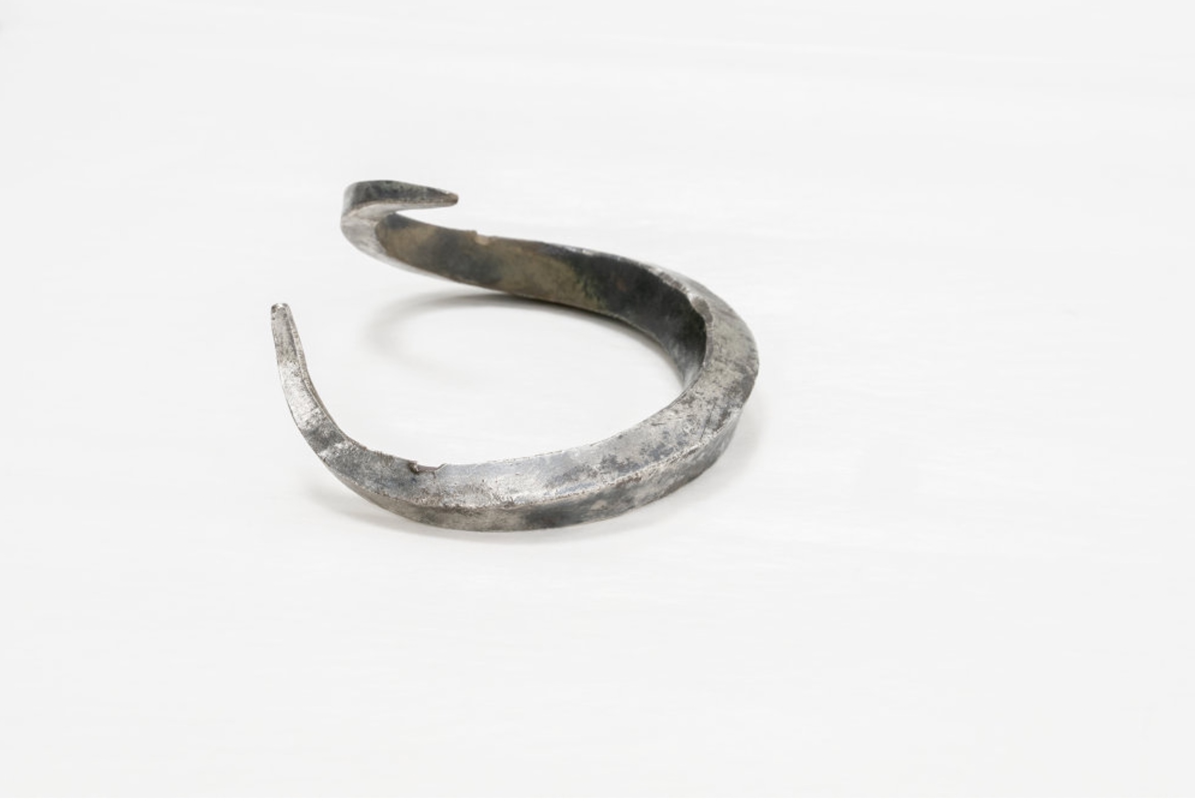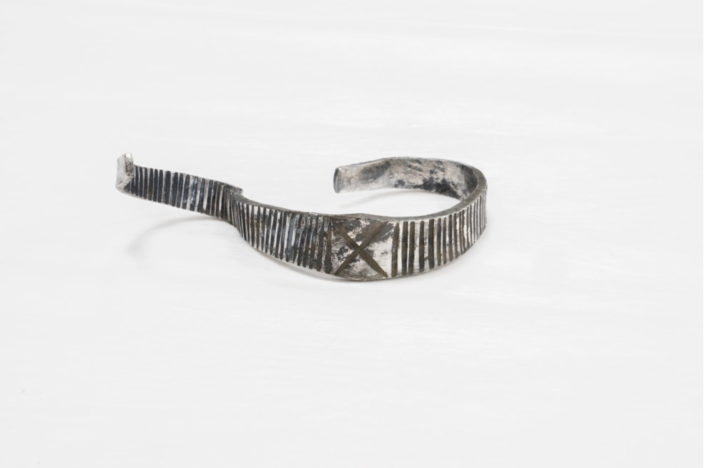 Knappliga pípti metaldetektorurin hjá honum hart, hann tók í ein lítlan spaka, sum hann hevði við sær, og fann eitt silvurarmband. Nakrar dagar seinni kom hann aftur á staðin og fann seks armbond afturat.