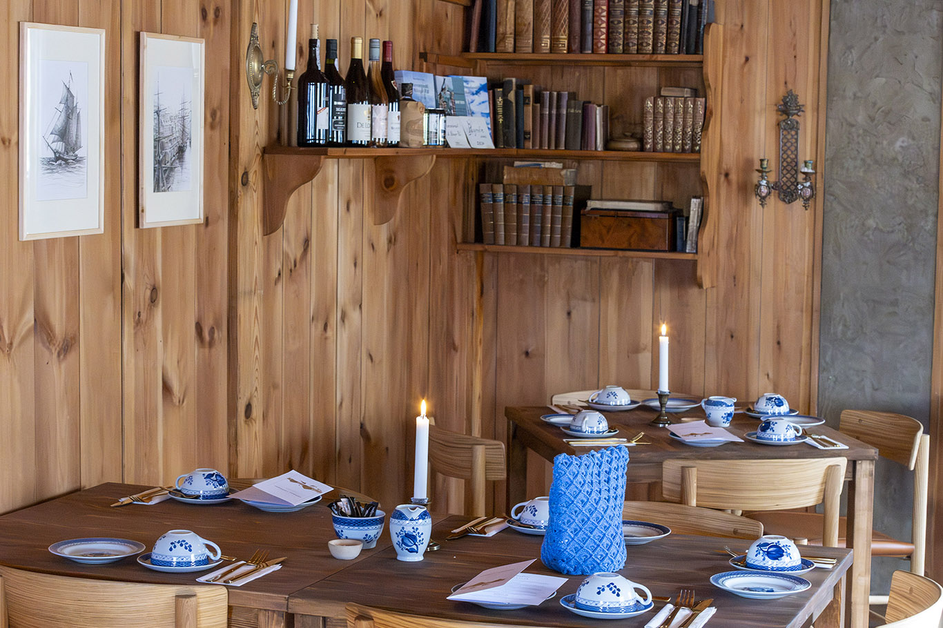 - Hetta er ein tann elsta kókibókin til fínari mat í danska kongaríkinum. Tann, sum vit vísa fram er ein endurprenting frá 1836, sum vit hava stongt inni, tí Apollonia hevur signerað hana. Uppskriftirnar verða brúktar her í húsinum. Eitt nú er rombudingurin, sum vit servera á testovuni, úr bókini.