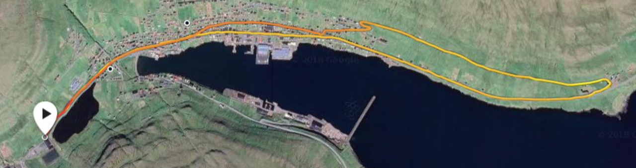 Tað hevur verið sindur ymiskt hvør leiðin og longdin á teininum hevur verið, tá ið runnið er í Vági. Í ár eins og fyri tveimum árum síðani er teinurin av Eiðinum í Vági, út á Nes millum Vág og Porkeri, og so vestur aftur á Vágseiði, tó eftir vegnum ovarlaga millum Nes og Vág, áðrenn leiðin aftur liggur oman í bygdina og beint vestur til Vágshøll.