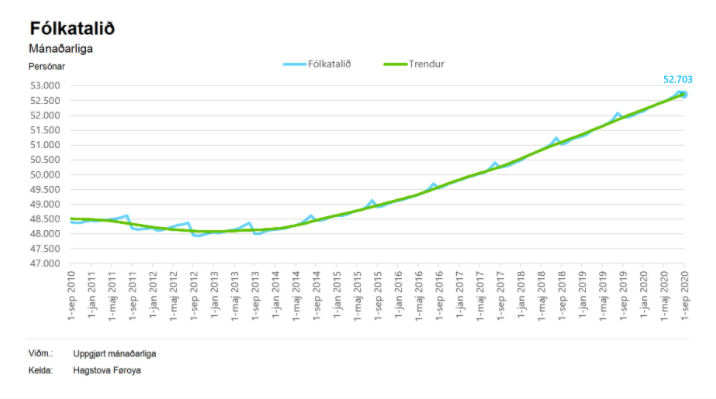 Tað vísa nýggjastu tølini hjá Hagstovuni, og sostatt eru 768 fleiri fólk enn um somu tíð í fjør. Í prosentum er vøksturin áljóðandi 1,5 prosent.