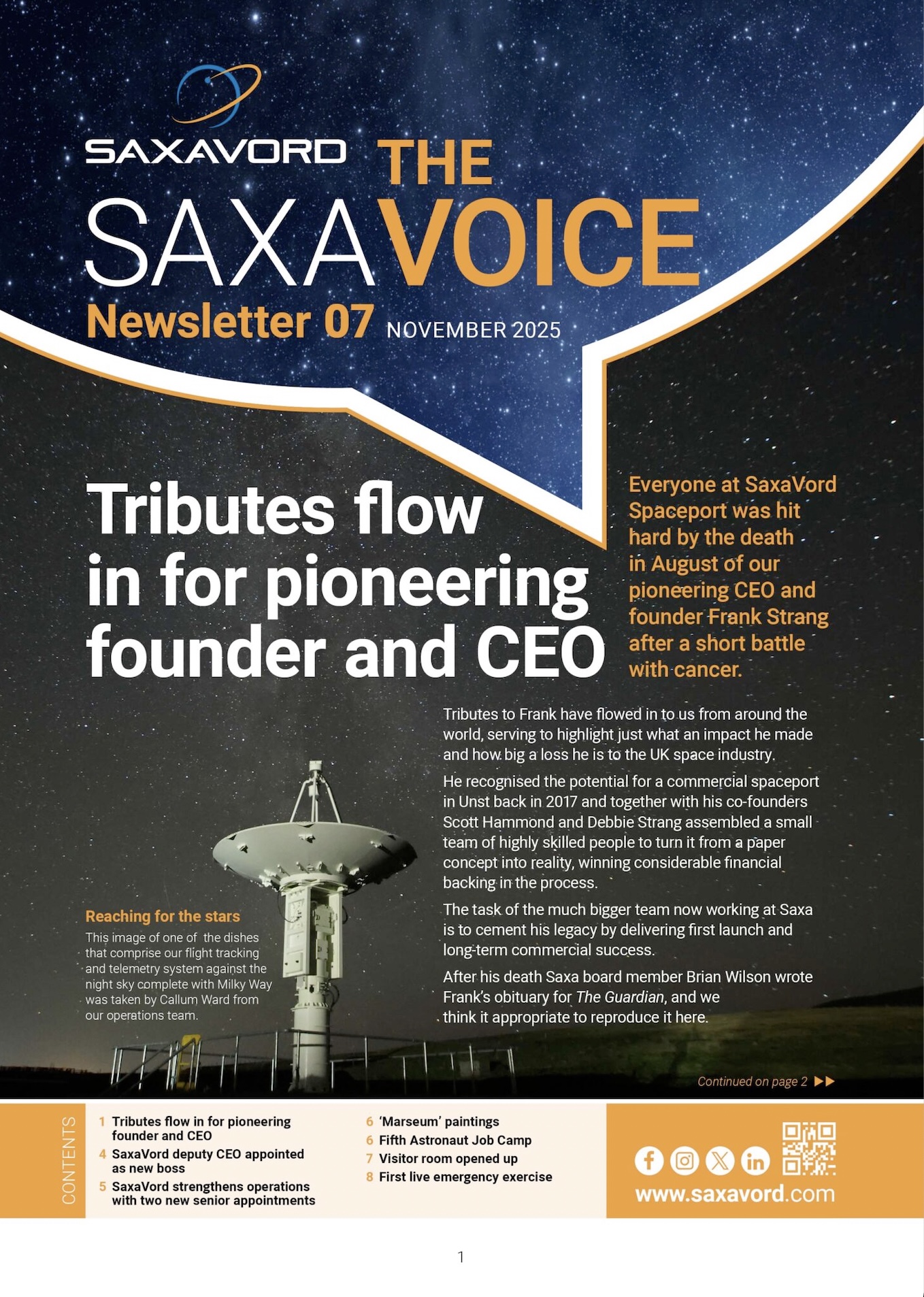 Tað kom allari rúmdarvinnuni illa við tá okkara pionerur Frank Strang á Saxavord Space Port í Shetlandi andaðist í august mánaði av krabba.