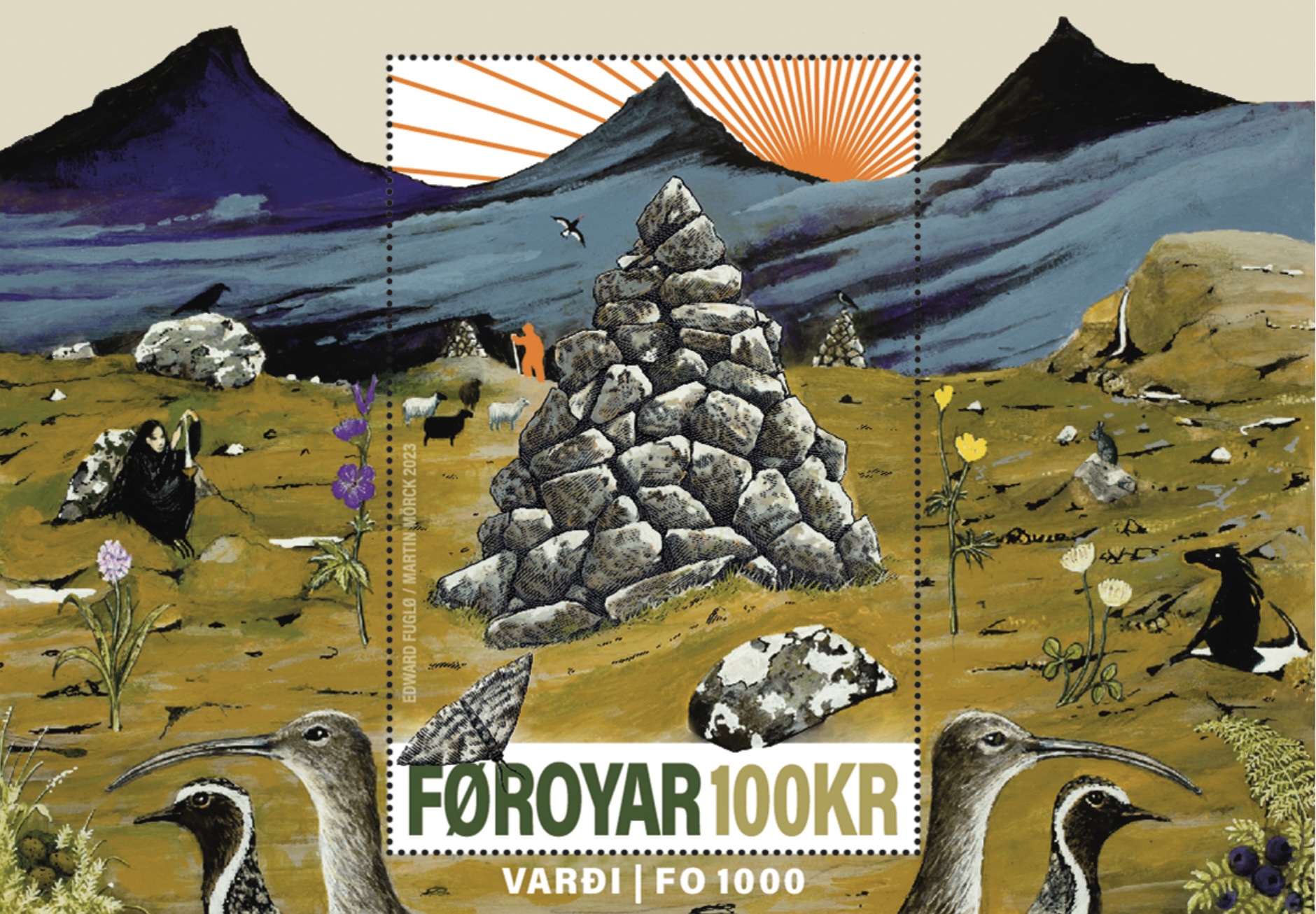 Frímerkið myndar ein varða úti í haganum eitt summarkvøld. Huglagið er summarkent, og varðin er umgirdur av tí plantu-, fugla- og djóralívi, sum er at síggja í haganum hesa ársins tíð. Huldan og nykurin eru somuleiðis partur av myndini.