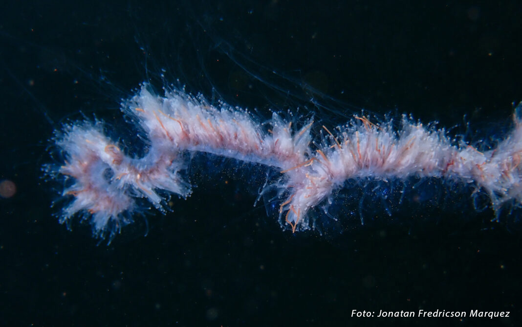 Hesar hvalspýggjur eru trupular at taka sýni av fyri at staðfesta slagið, tí tær eru so viðbreknar. Men talan er allarhelst um slagið Apolemia uvaria, sum hevur fingið føroyska navnið Perlubandshvalspýggja” Siphonophorur gera langar, flótandi ketur á sjónum, og sjóvarstreymar ávirka, hvussu tær ferðast. Tað vóru júst sovorðnar ketur, sum flutu í vatnskorpuni.