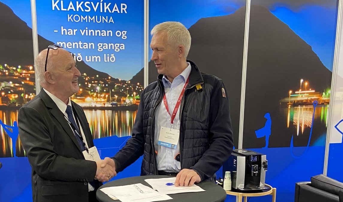 Tað skrivaðu Áki í Skemmuni, stjóri á Atlantic Fair, og Karl H. Johansen, borgarstjóri í Klaksvíkar kommunu, undir sáttmála um seinnapartin í dag.