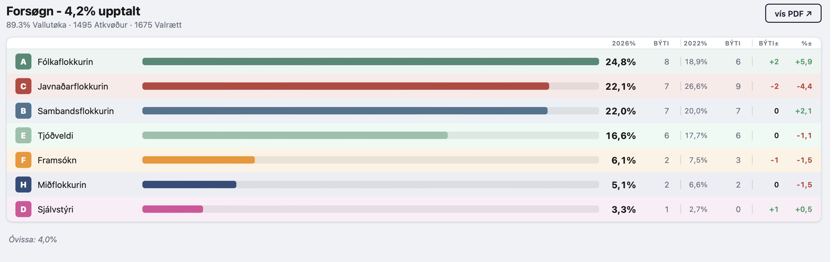 Tjóðveldi fær 5 tingsessir.