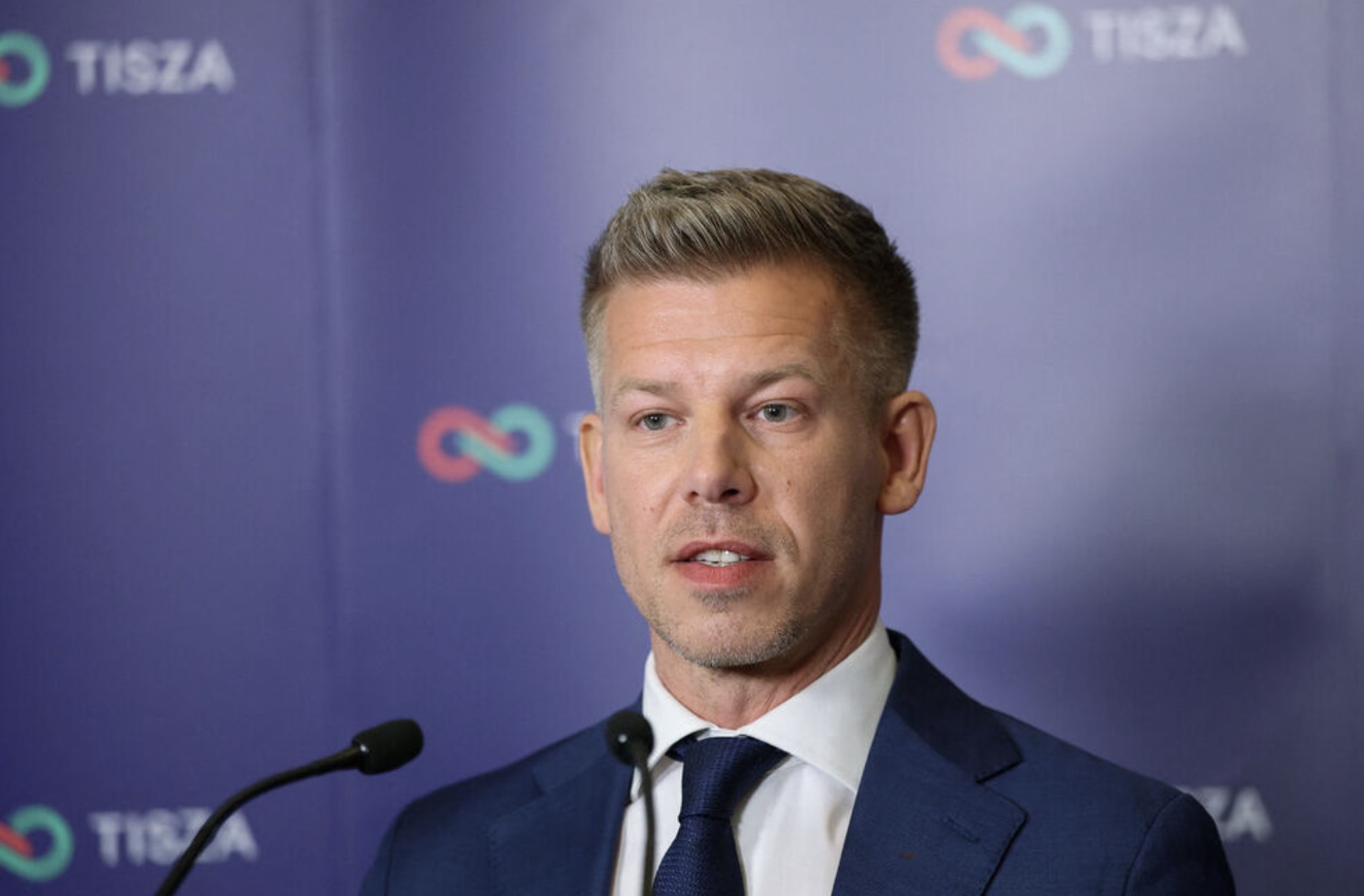Andstøðuflokkurin Tisza við Péter Magyar sum formanni stendur til at vinna tjóðartingsvalið í Ungarn. Mynd: Leonhard Foeger/Reuters/Ritzau Scanpix