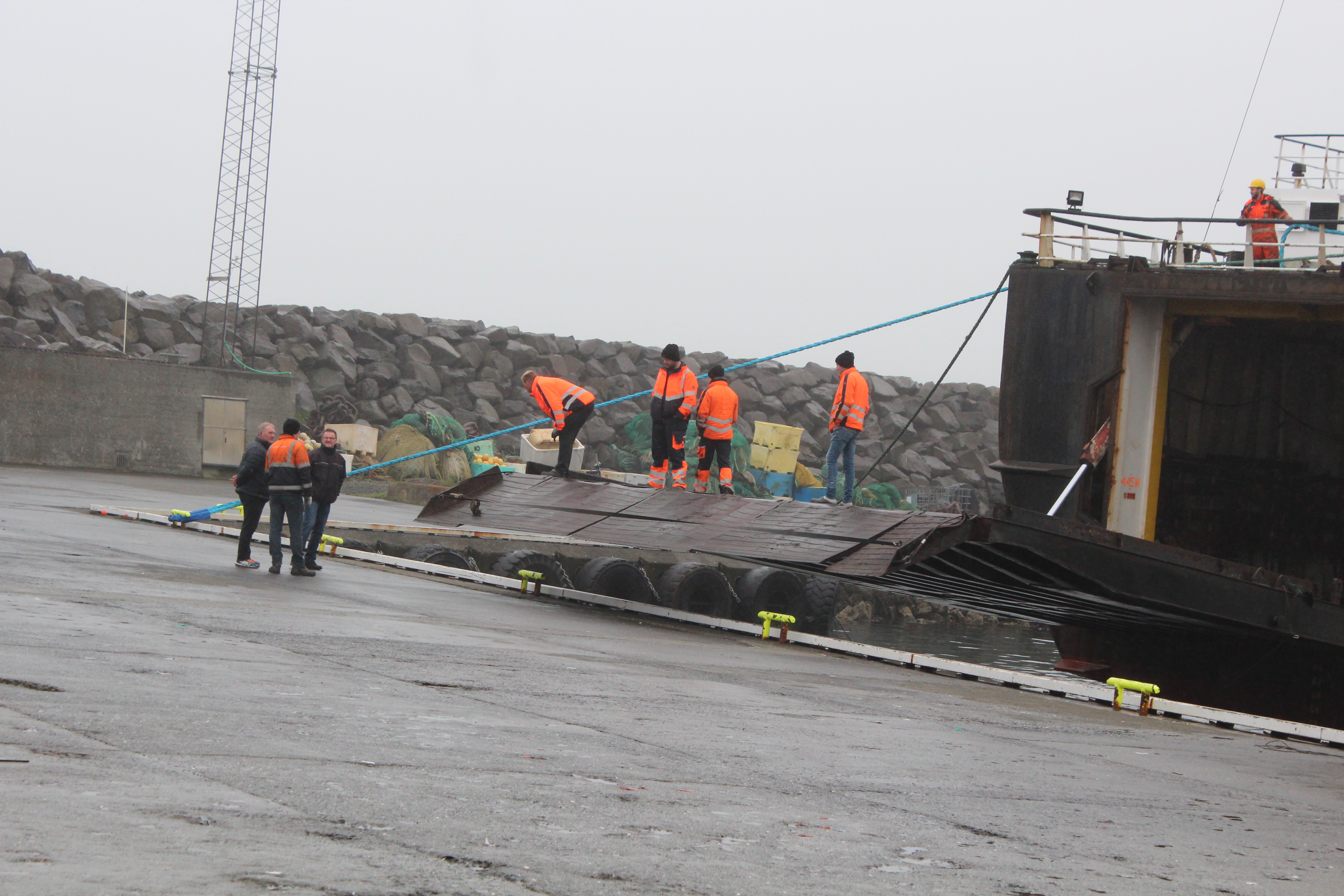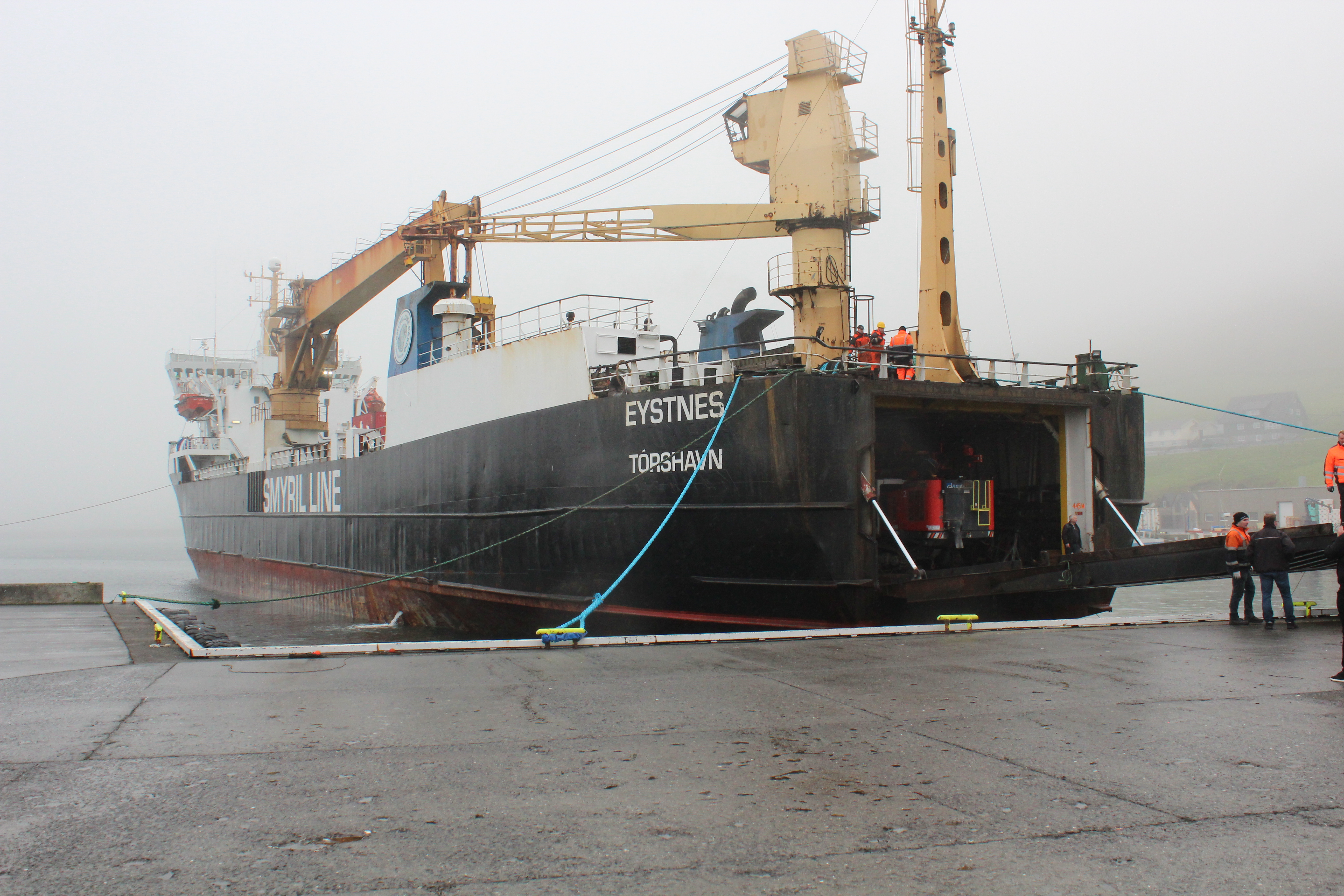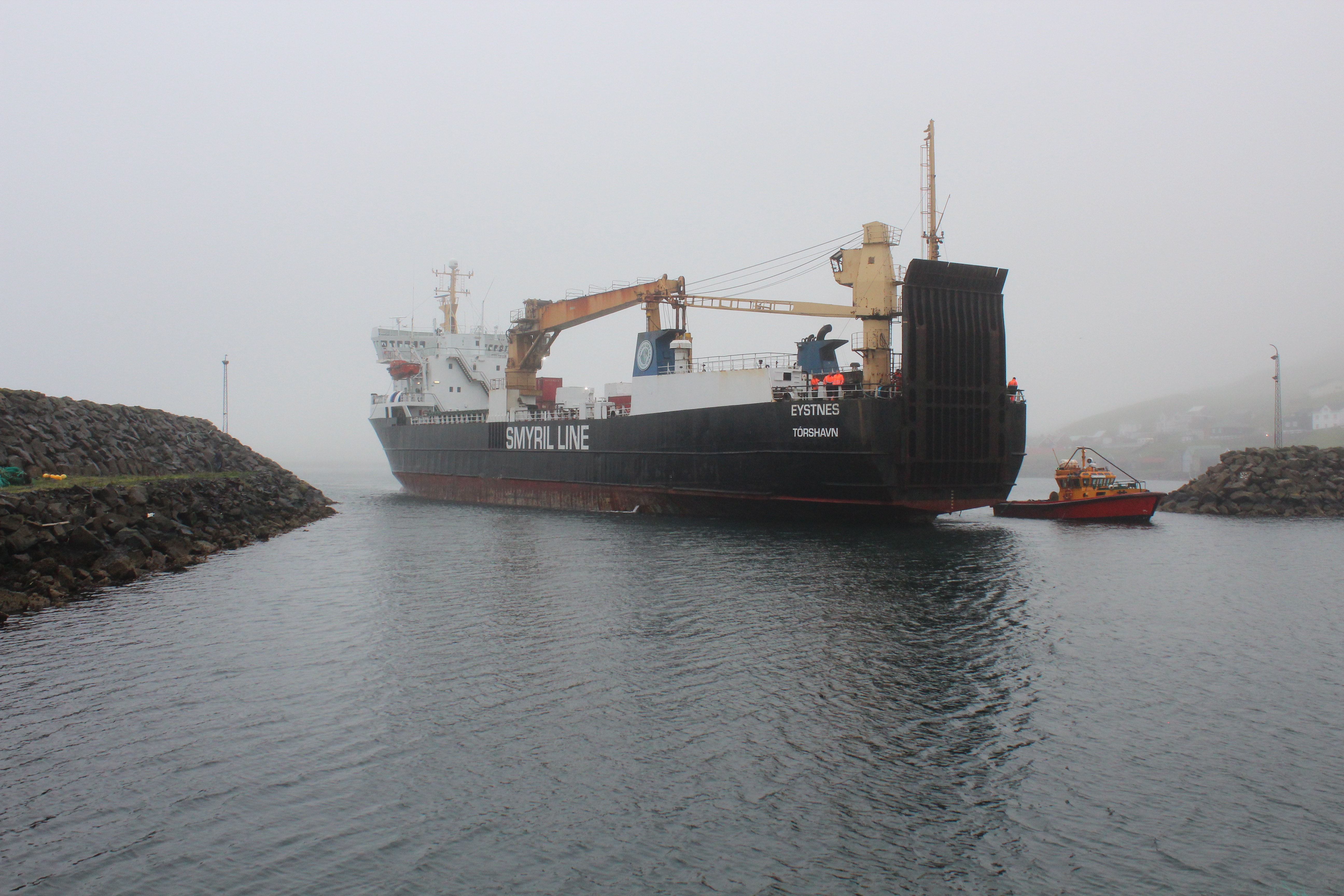 Havnin í Hvalba er ikki so stór, og tí var ikki lætt hjá Eystnes at leggja at og fáa útgerðina í land. Báturin fekk ikki lagt ordiliga at, men hann var væl bundin.