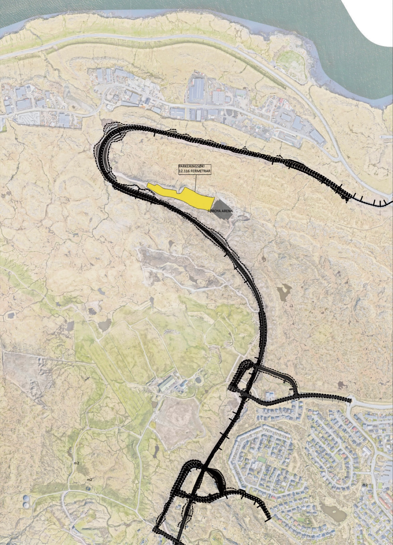 Fyri at gagnnýta lendið í økinum sum best, er ætlanin, at spæliland skal byggjast oman á parkeringsplássini við Stórhøllina.