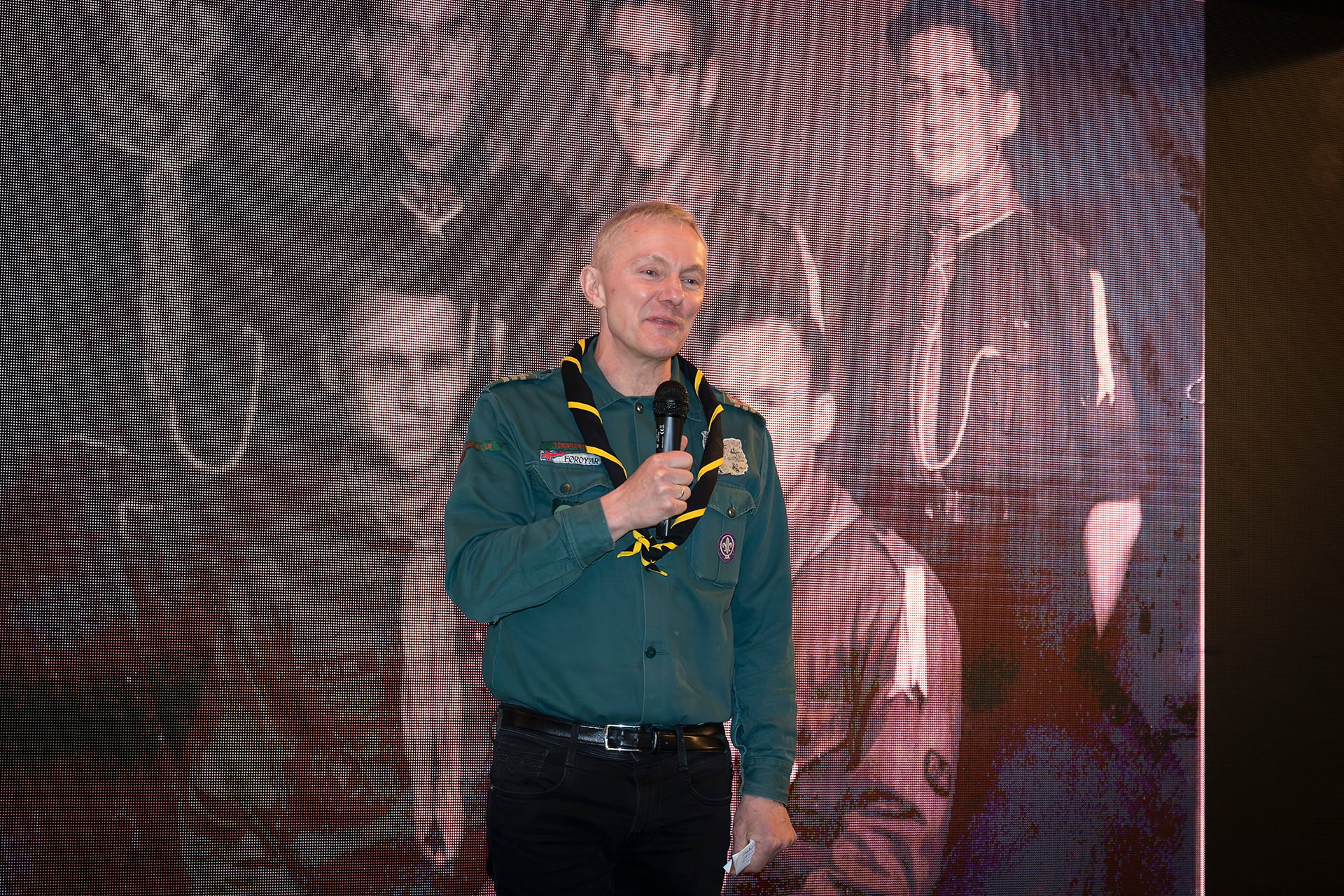 Vegna Tórshavnar kommunu skal eg biðja bólkaleiðaran í Skótaliði KFUM’s, Boga Sigurstein, um at koma upp higar at taka ímóti.