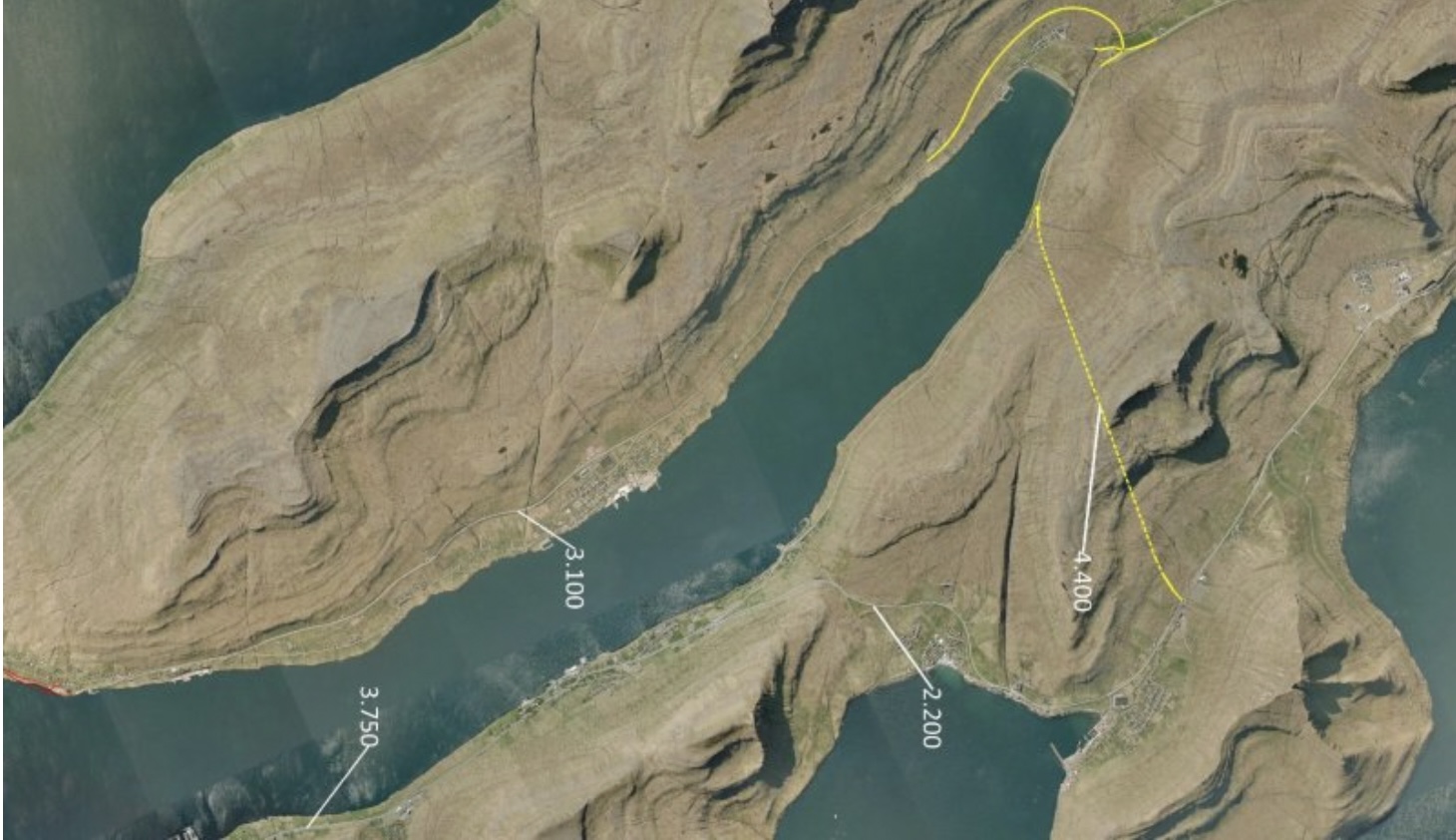 – Ein linjuføring har tunnilin gongur millum Gøtudal og Skálabotn, og ein linjuføring har tunnilin gongur millum Gøtudal og Skálafjørð, umleið 2 kilometrar sunnan fyri íbindingina í vegin í Skálabotni.