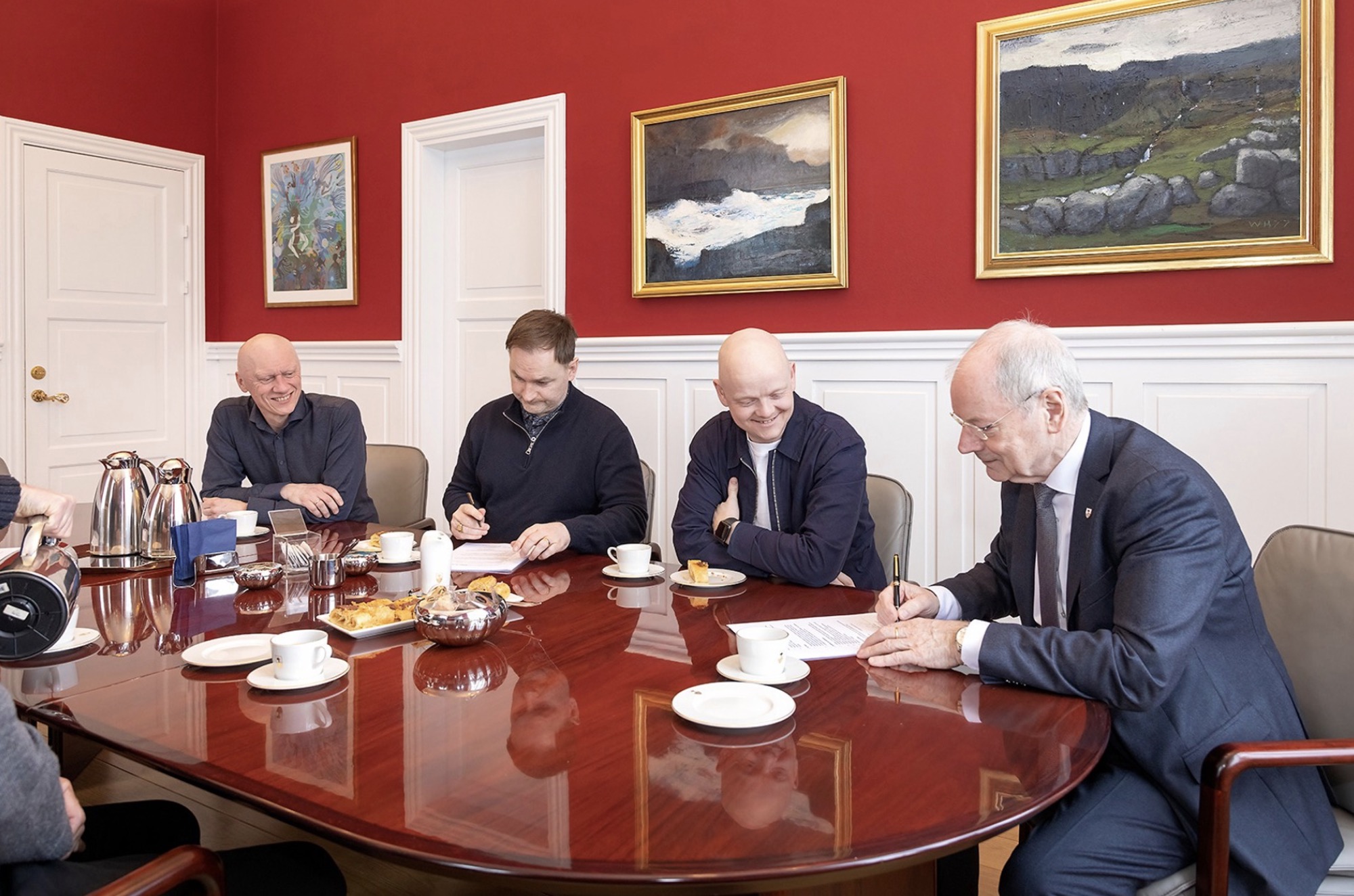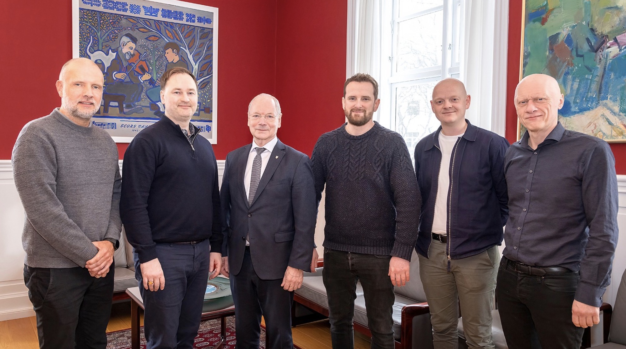 Á felagsmyndini eru Heðini Mortensen, borgarstjóri, Edwin Roald, golfvallararkitektur Eureka Golf, Rógvi Mikkelsen, formaður í Tórshavnar Golffelag, Jóan Petur Hentze, trivnaðarstóri, Johan Syderbø, leiðari á byningsdeildini og Bárður Johannesen, verkætlanarleiðari.