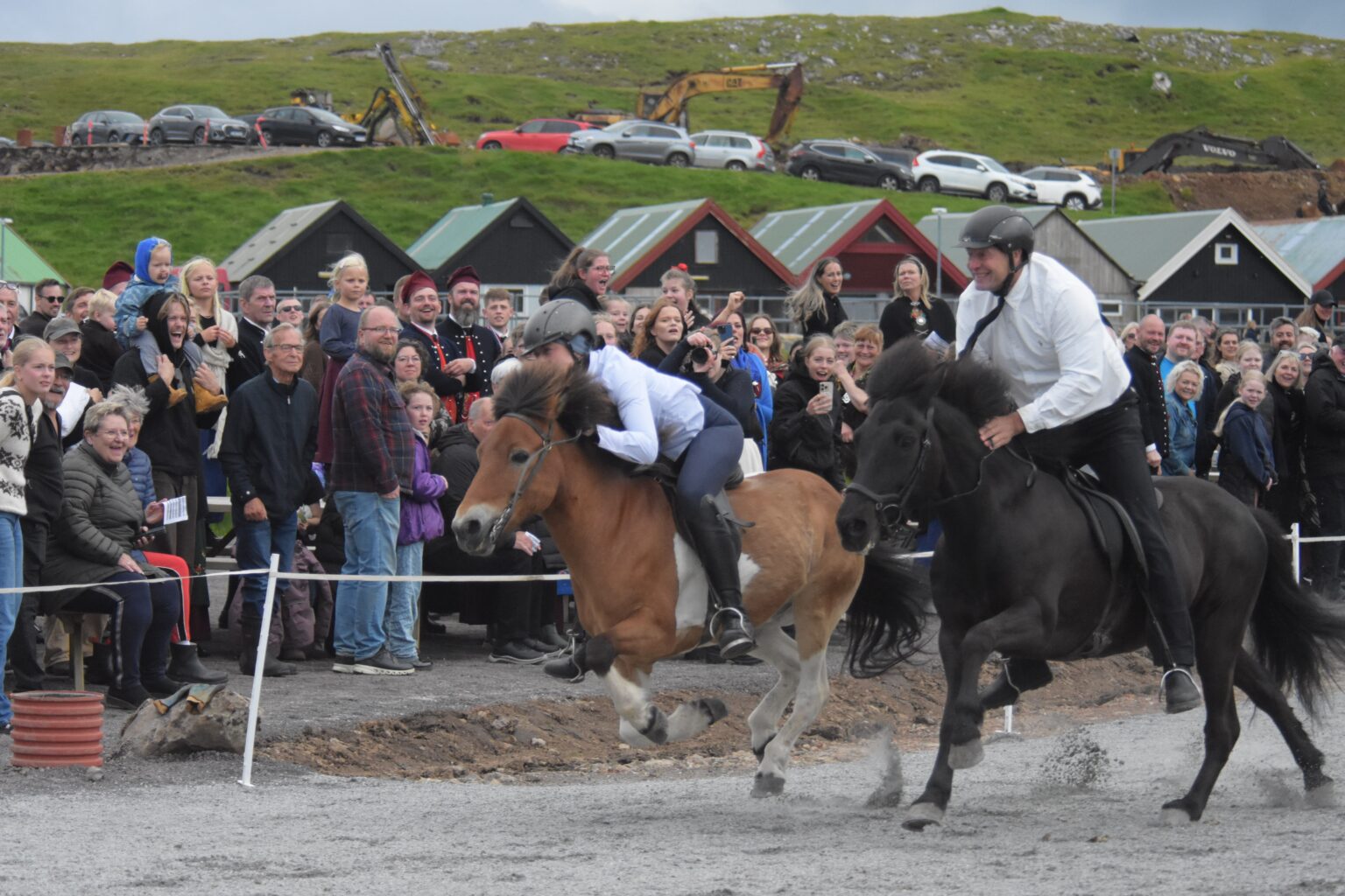 Tá kappríðingin hjá Føroya Ríðingarfelag ólavsøkudag endaði, var svart av fólki á Kráarheyggi, har man hevur eitt framúr útsynið oman á nýggju breytina. Veðrið var gott og fólk hugnaðu sær í góðu kørmunum úti í Havnardali.
