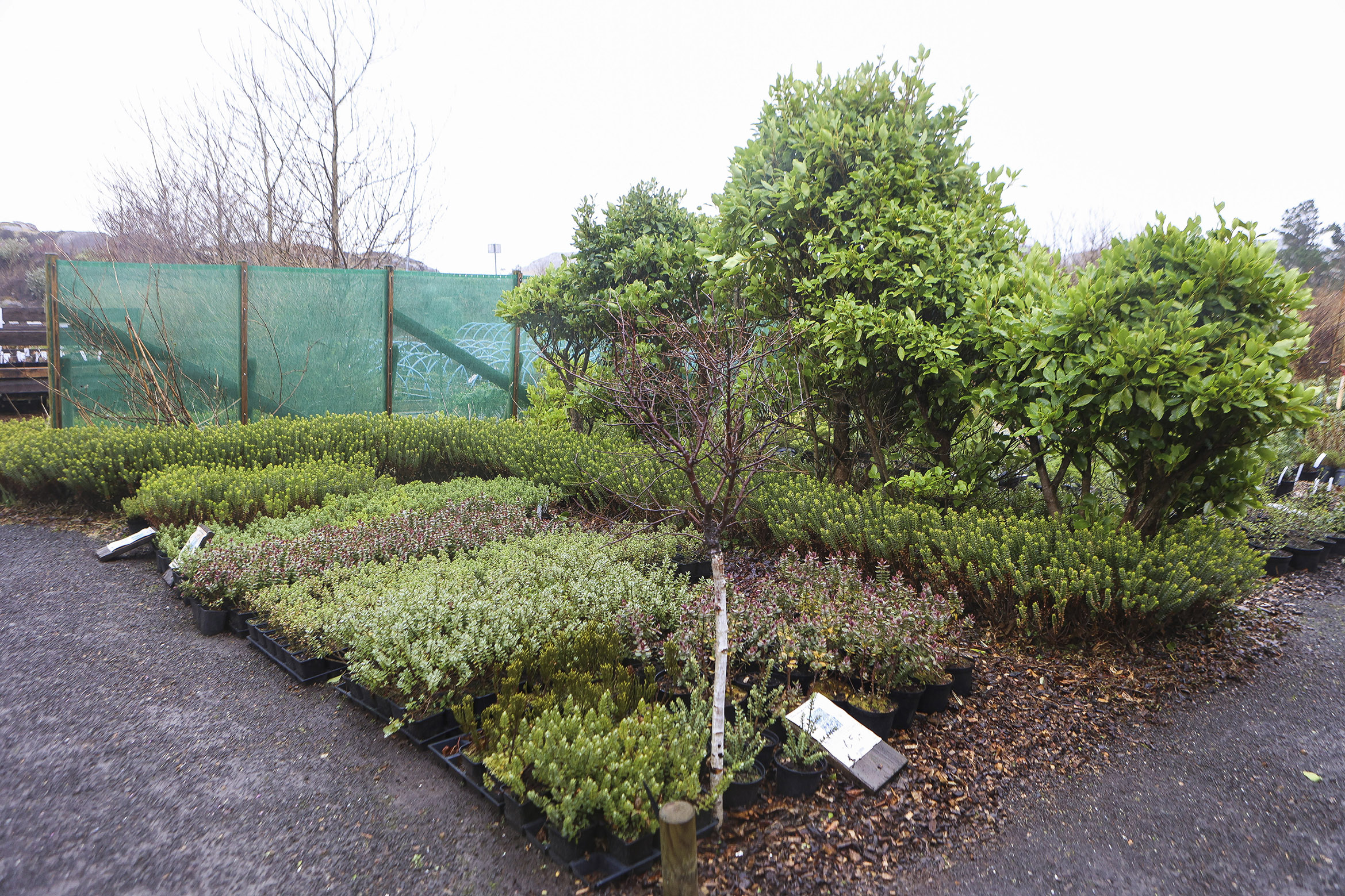 Nevnast kunnu Griseline og Olearia. Griseline síggja vit nógv í Onglandi og Skotlandi, sum vit eisini brúka her hjá okkum. Eitt nú hava vit 20 sløg av oleariu, sum klára seg væl.