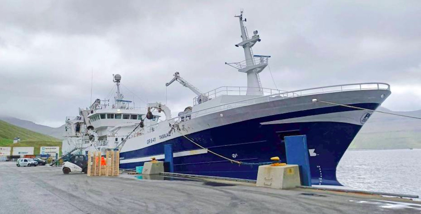 Tað er trolarin, Tasiilaq, sum hevur fiskað fyri Greenland Pelagic, sum upprunaliga hevði eina makrelkvotu á 6.548 tons, men sum við kvotuumbýti kundi fiska upp í 10.067 tons.