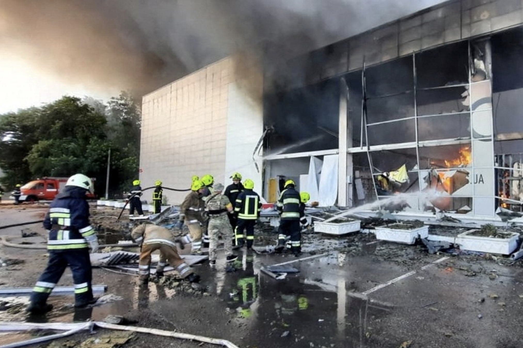 Ein handilsmiðstøð í býnum Krementjuk miðskeiðis í Ukraina er í dag rakt av einum russiskum rakettálopi.