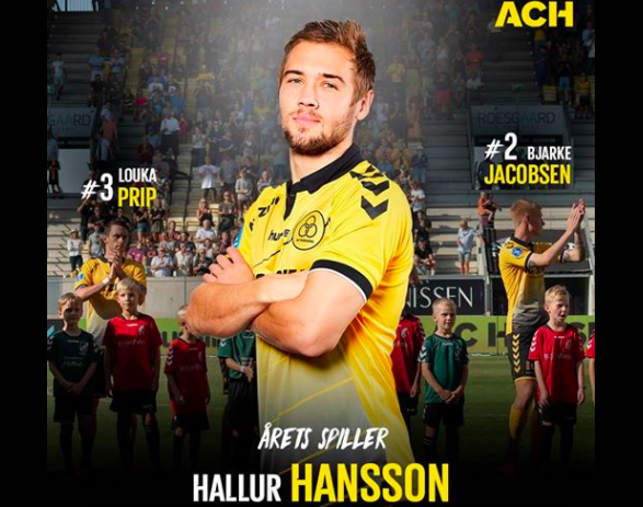 Føroyski landsliðsmiðvallarin er liðskipari hjá AC Horsens og gongur á odda. Hetta er annað árið á rað, at Hallur Hansson verður kosin til ársins spælara í felagnum. Hann vann heiðurin frammanfyri Bjarke Jacobsen og Louka Prip.