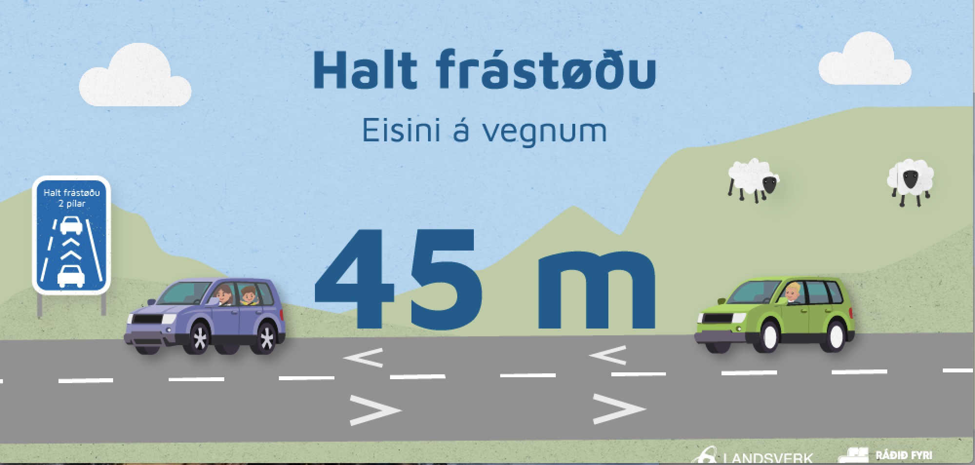 Í nýggjum átaki fara Landsverk og Ráðið fyri Ferðslutrygd at minna bilførarar á at halda frástøðu á vegnum.