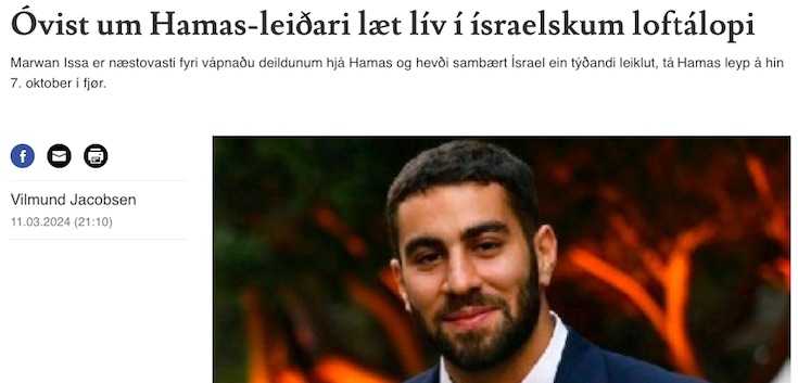 Hvørki Hamas ella Ísrael hava váttað, at Marwan Issa er deyður í ísraelskum loftálopi.