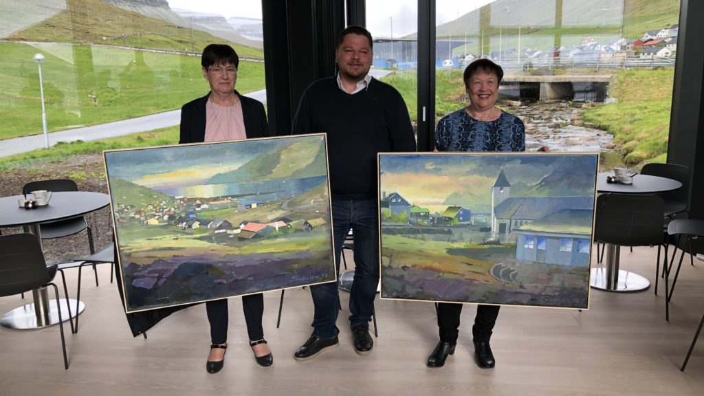 Hanna og Fía, sum báðar nú eru farnar frá vegna aldur, fingu hvør sín málning frá kommununi sum tøkk fyri drúgva tænastu. Málningarnar hevur kendi listamaðurin Sámal Toftanes hevur málað.