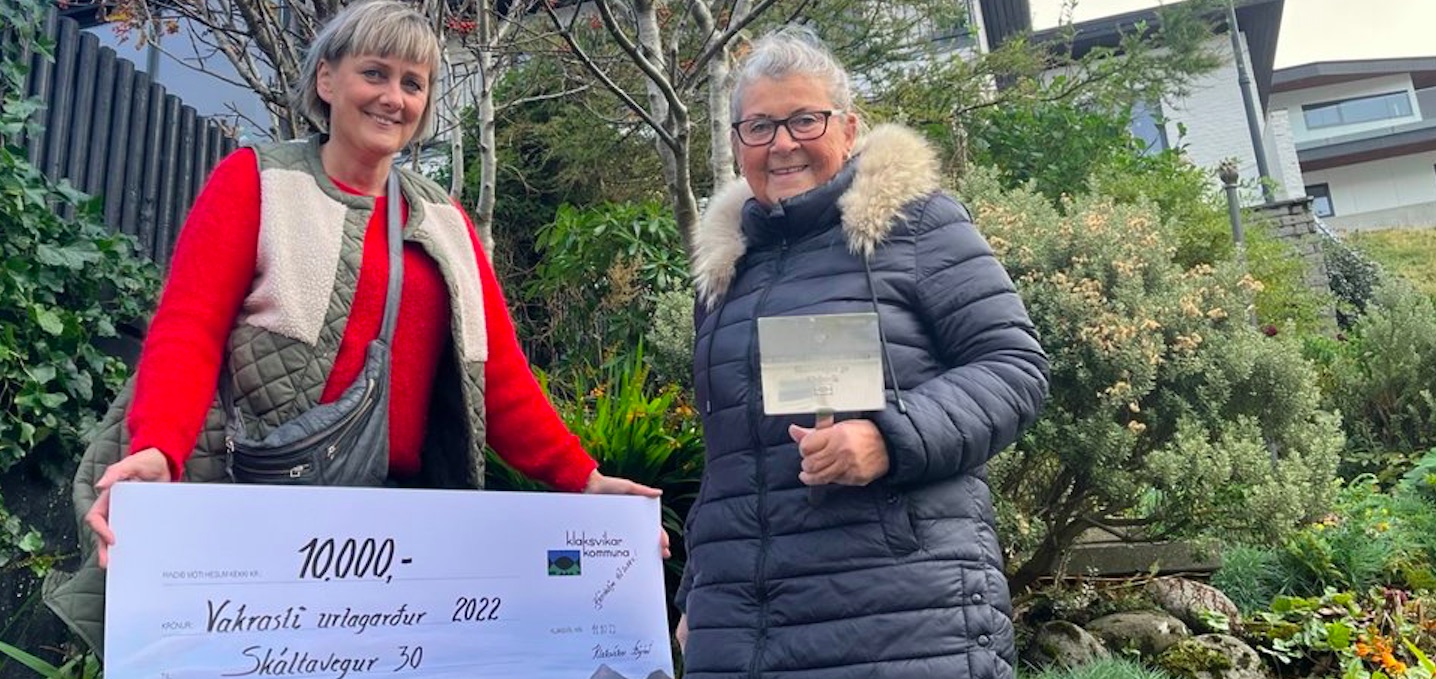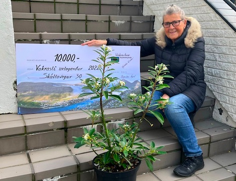 Somuleiðis fingu Hanna og Mikkjal eina plantu frá býargartnaranum og eina merkisplátu til minnis um heiðurin. Harumframt vórðu gávukort á 2.000 krónur handað til urtagarðseigarar, sum eisini sermerktu seg í kappingini.