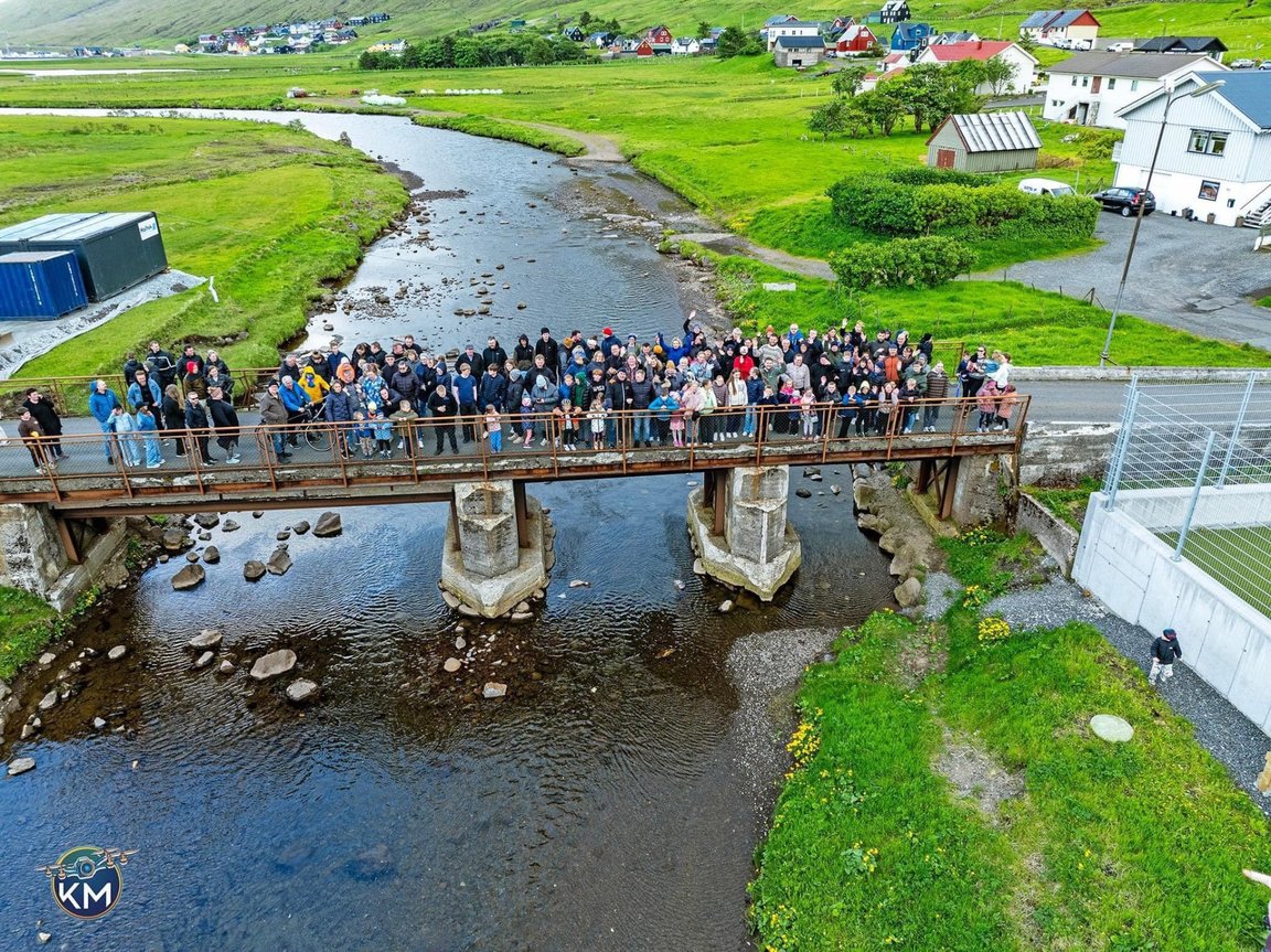 Byrjað verður á Streymnes síðuni, har Eiðis ljómfelag spælir og Jógvan Kruse sigur nøkur orð. Aftaná bandið er klipt, koyrur fyrsti bilurin um brúnna og í hølinum á honum ganga øll tey ið eru møtt upp. Mitt á brúnni steðga vit til eina felags mynd sum Kjartan Madsen tekur við dronu (um veðrið er til tað).