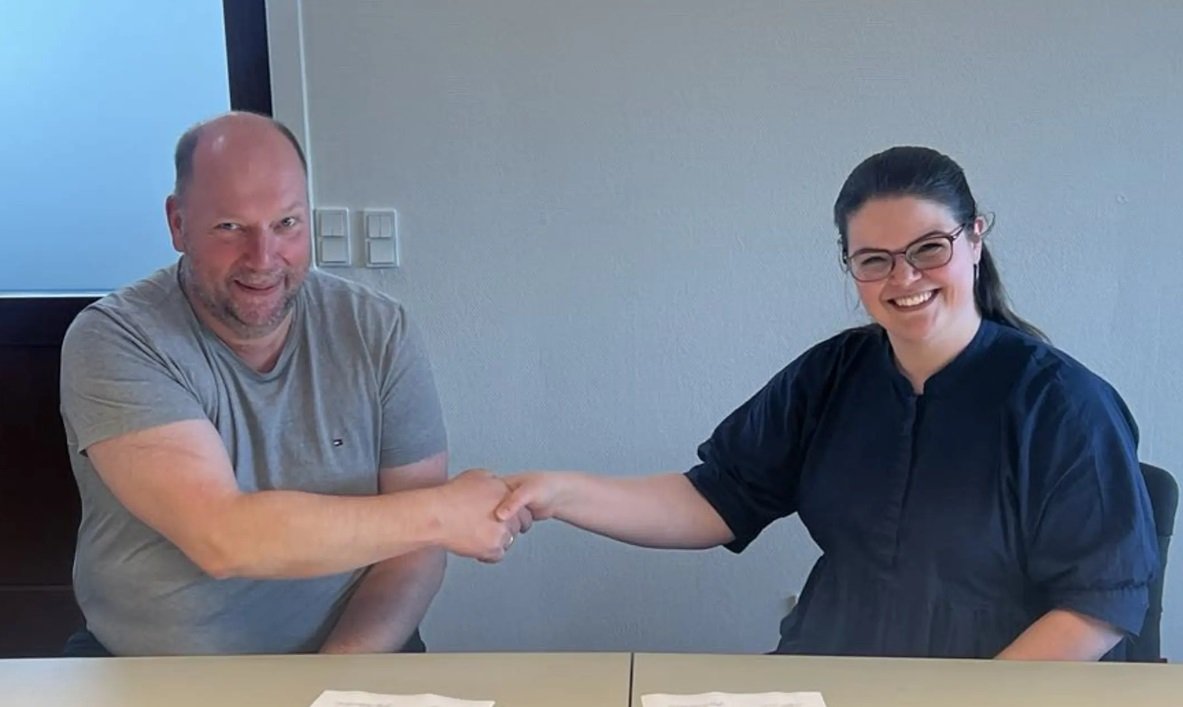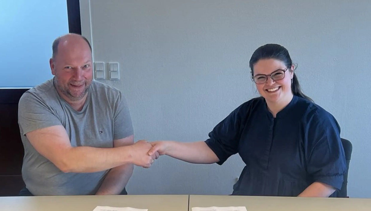 Týsdagin 2. juli skrivaðu Bjørg Winther Reinert, forkvinna í bygdafelagum og Hans Jóhann Sørensen, borgarstjóri undir avtaluna.