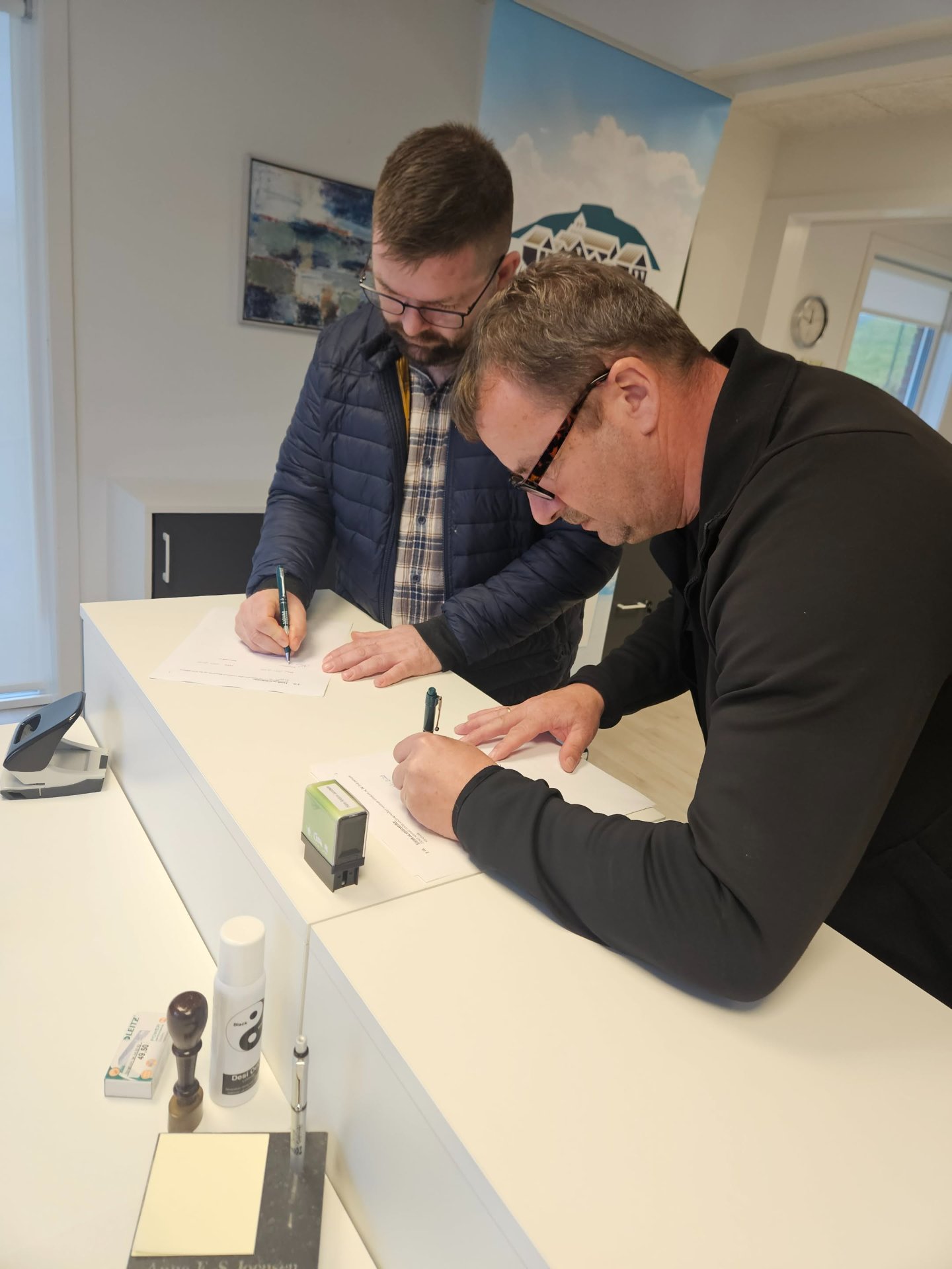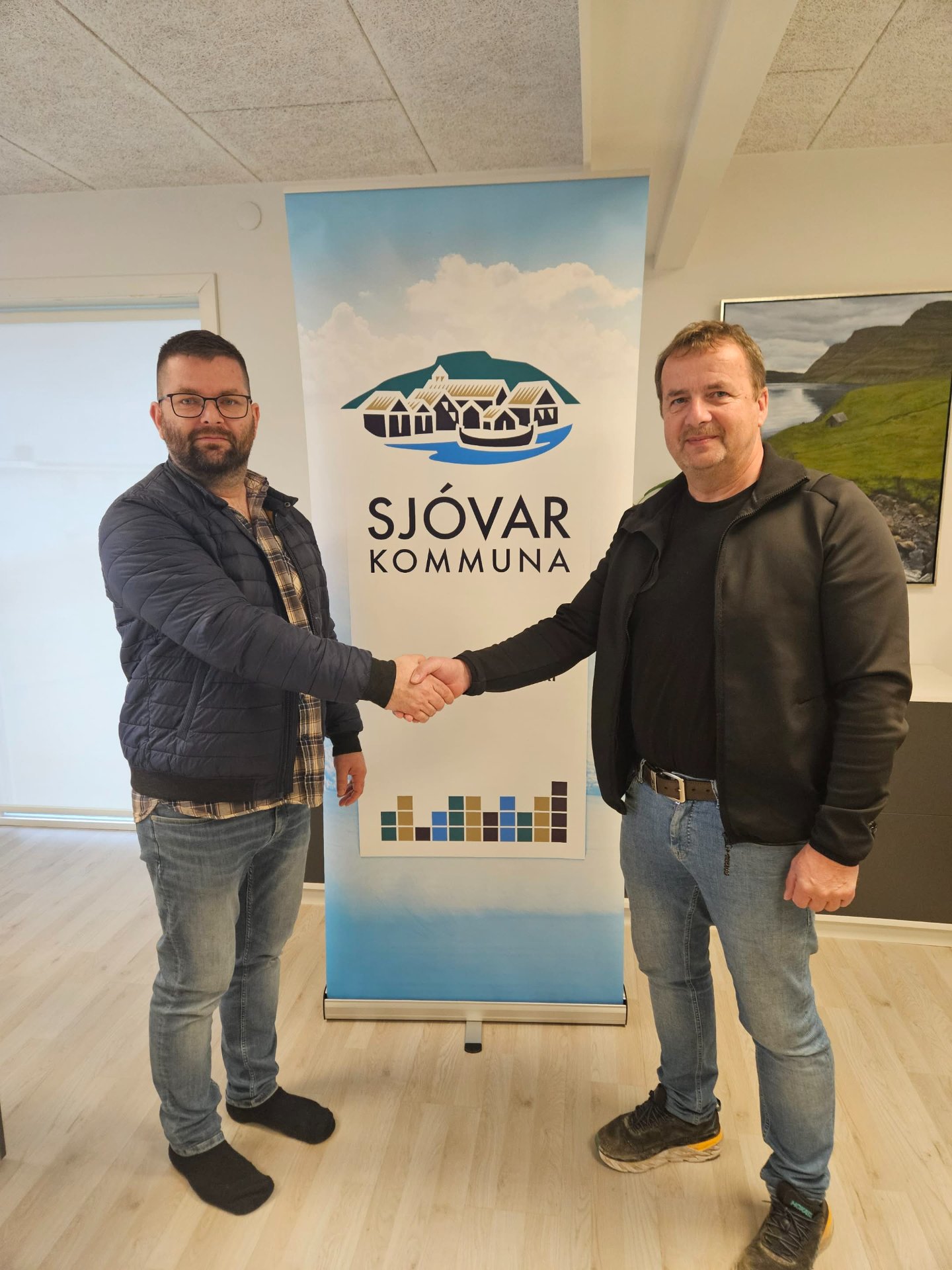 Tað vóru stjórin í Sp/F Rókin, Jákup Martin Kjeld, og borgarstjórin Hans Anders Jacobsen sum skrivaðu undir á kommunuskrivstovuni í morgun. Arbeiði byrjar, so skjótt øll loyvir eru klár, og verður væntandi liðugt í 3. ársfjórðingi í 2026.