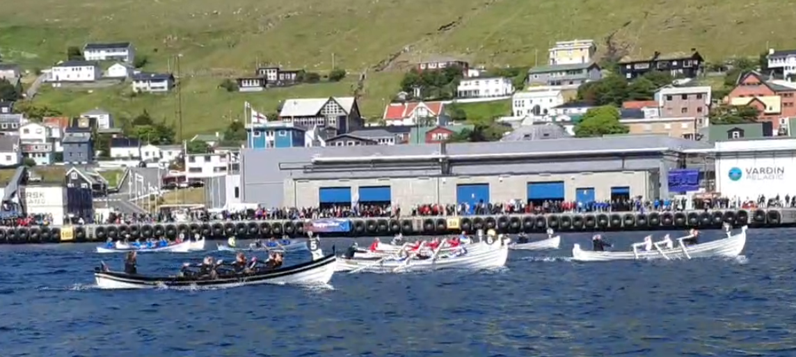 Fyrsta finalan er av í útsetta kappróðrinum á jóansøku á Tvøroyri. Í gjár bar ikki til at rógva, tí tað var so nógvur vindur. Í dag skínur sólin av heiðum himni, og hóast tað er eitt lot, so eru líkindini hampuliga góð at rógva kapp.