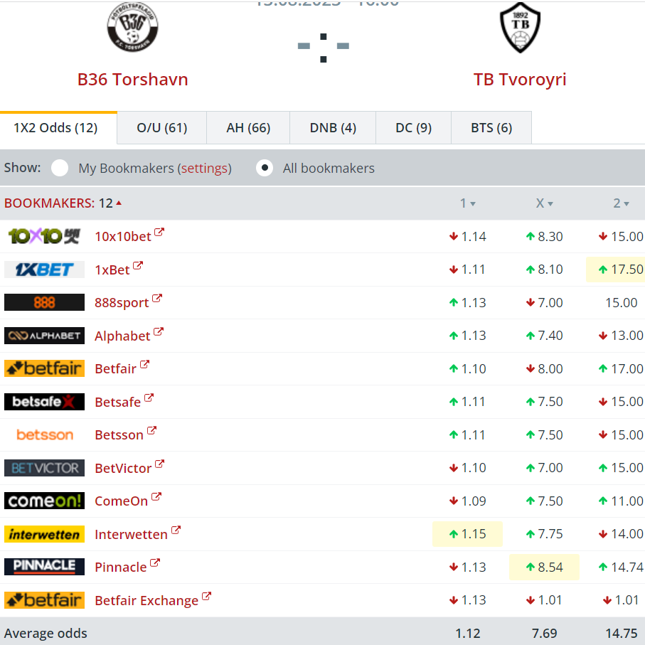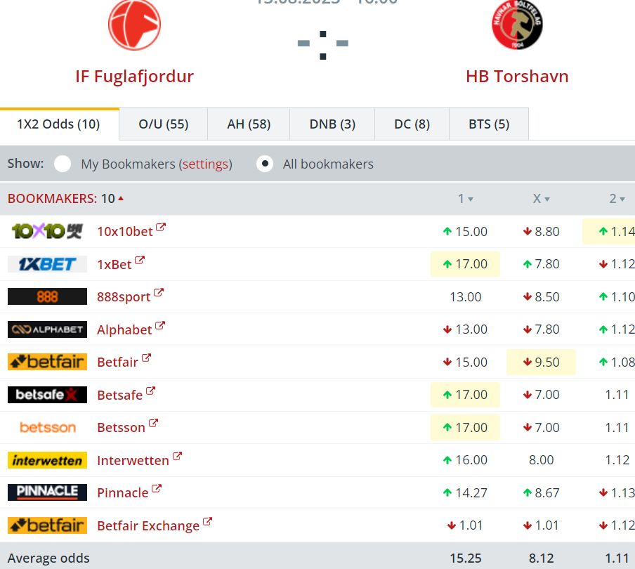 HB og B36 eru risastórir favorittar hjá altjóða veddingarfyritøkunum til at vinna dystirnar móti ÍF og TB.