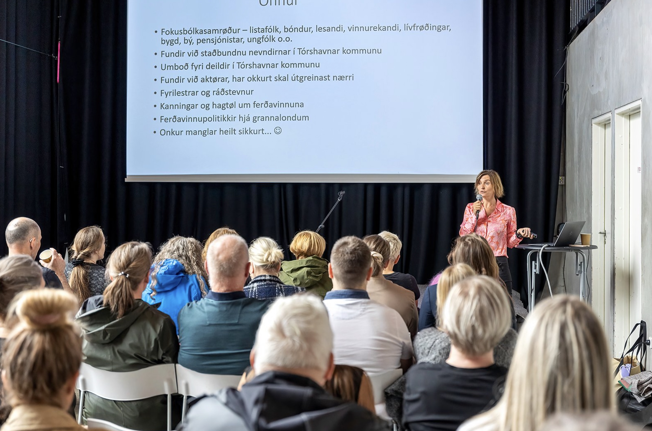 Tað skrivar Tórshavnar kommuna. Myndirnar eru úr Perluni kl 14 í dag, tá Tórshavnar kommuna alment legði nýggja ferðavinnupolitikkin fram. Ferðavinnupolitikkurin er samtyktur av býráðnum og er tí grundarlag undir øllum arbeiði frameftir at styrkja vinnuferðavinnuna í høvuðsstaðnum.