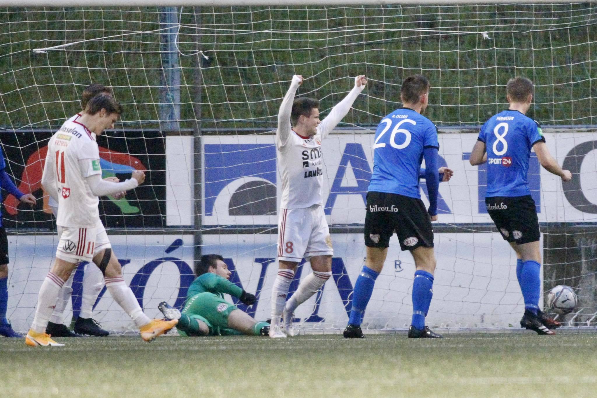 Hilmar Leon Jakobsen legði HB framum 1-0 í 20. minutti. Andras Ó. Olsen javnaði í 25. minutti, og minuttin eftir var tað Daniel Johansen, sum aftur legði HB framum 2-1.