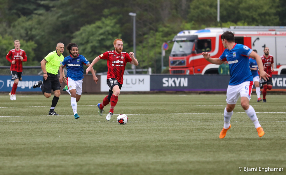 HB: Bjarti Vitalis Mørk - Jógvan Rói Davidsen, Hørður Askham, Lasse T. Andersen, Magnus Egilsson - Adrian Justinussen, Tróndur Jensen, Brynjar Hløðversson (60. Dan í Soylu) Símun Samuelsen - René Shaki Joensen (75. Pætur Petersen), Sebastian Pingel (60. Ari Mohr Olsen)