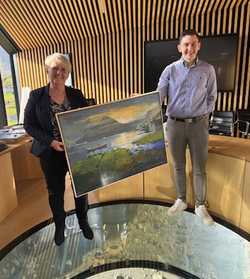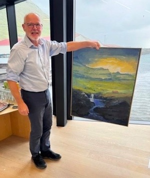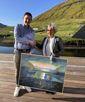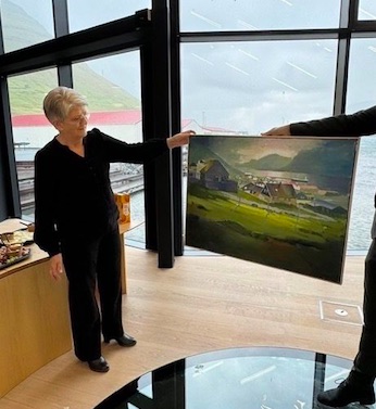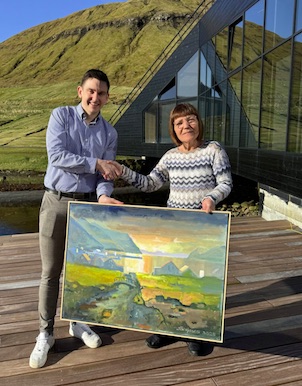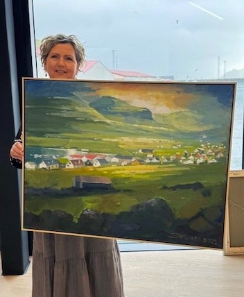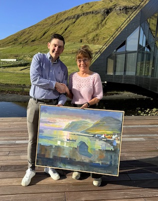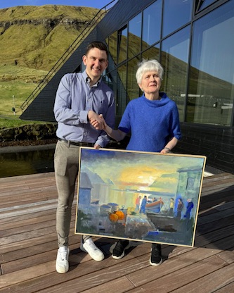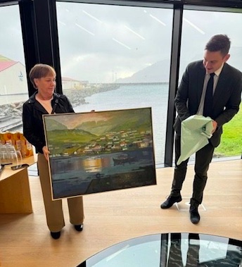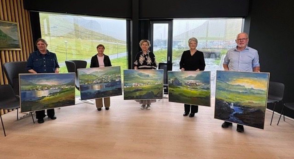 Borgarstjórin, Per Martin Gregersen, handaði teimum hvør sín málning, sum Sámali Toftanes hevur málað, og gávan varð veitt fyri trúgva og drúgva tænastu í kommununi.
