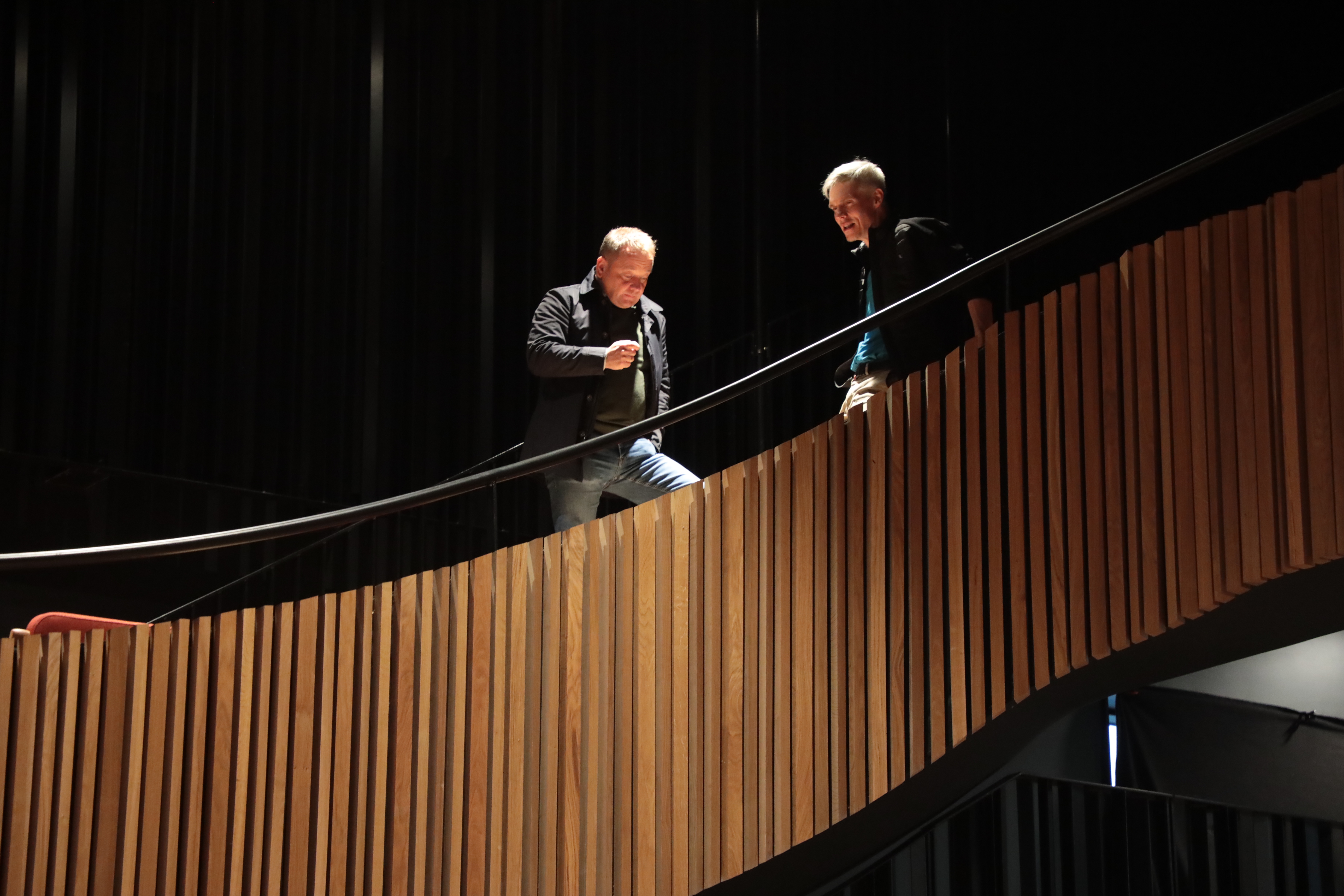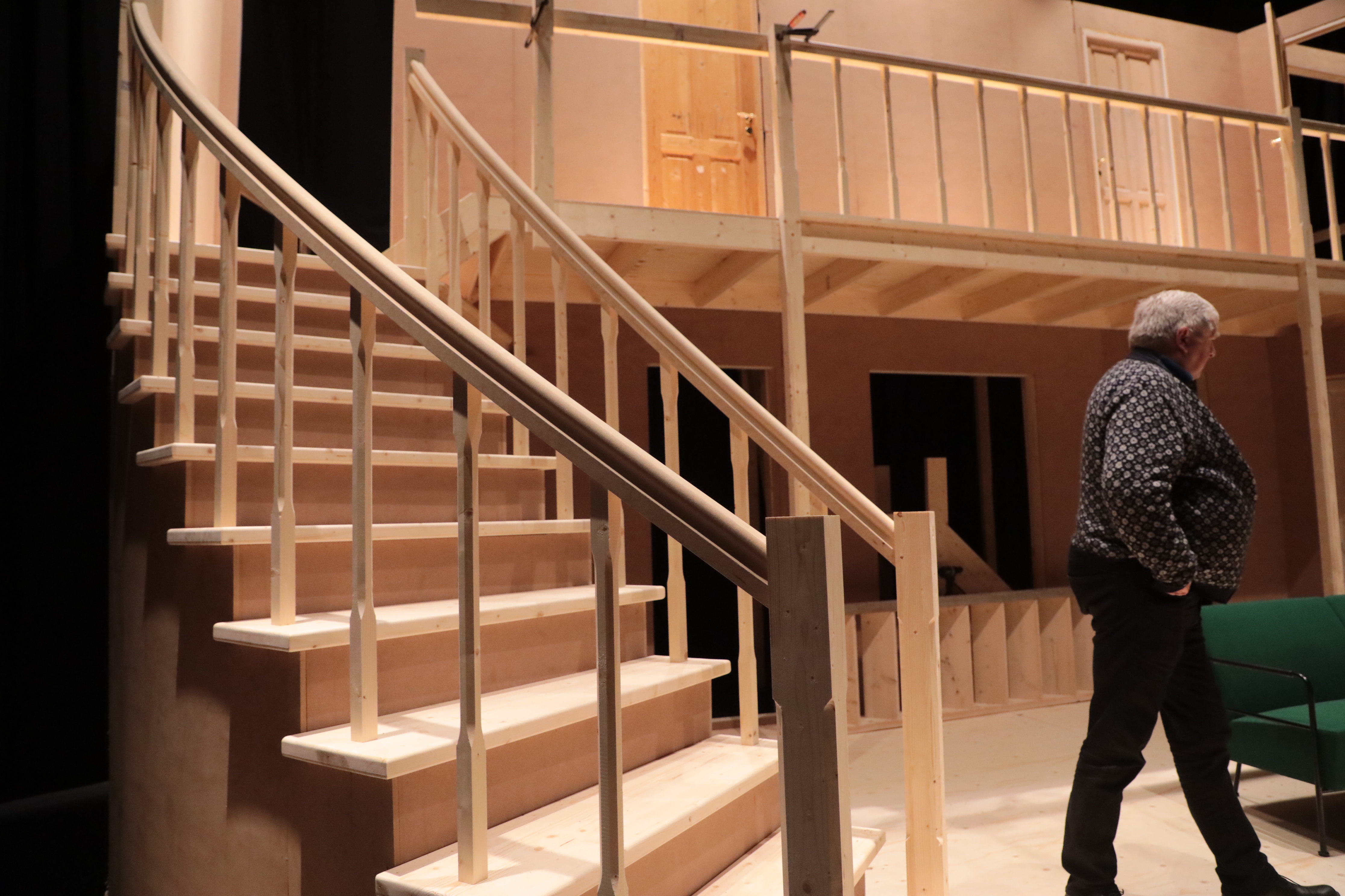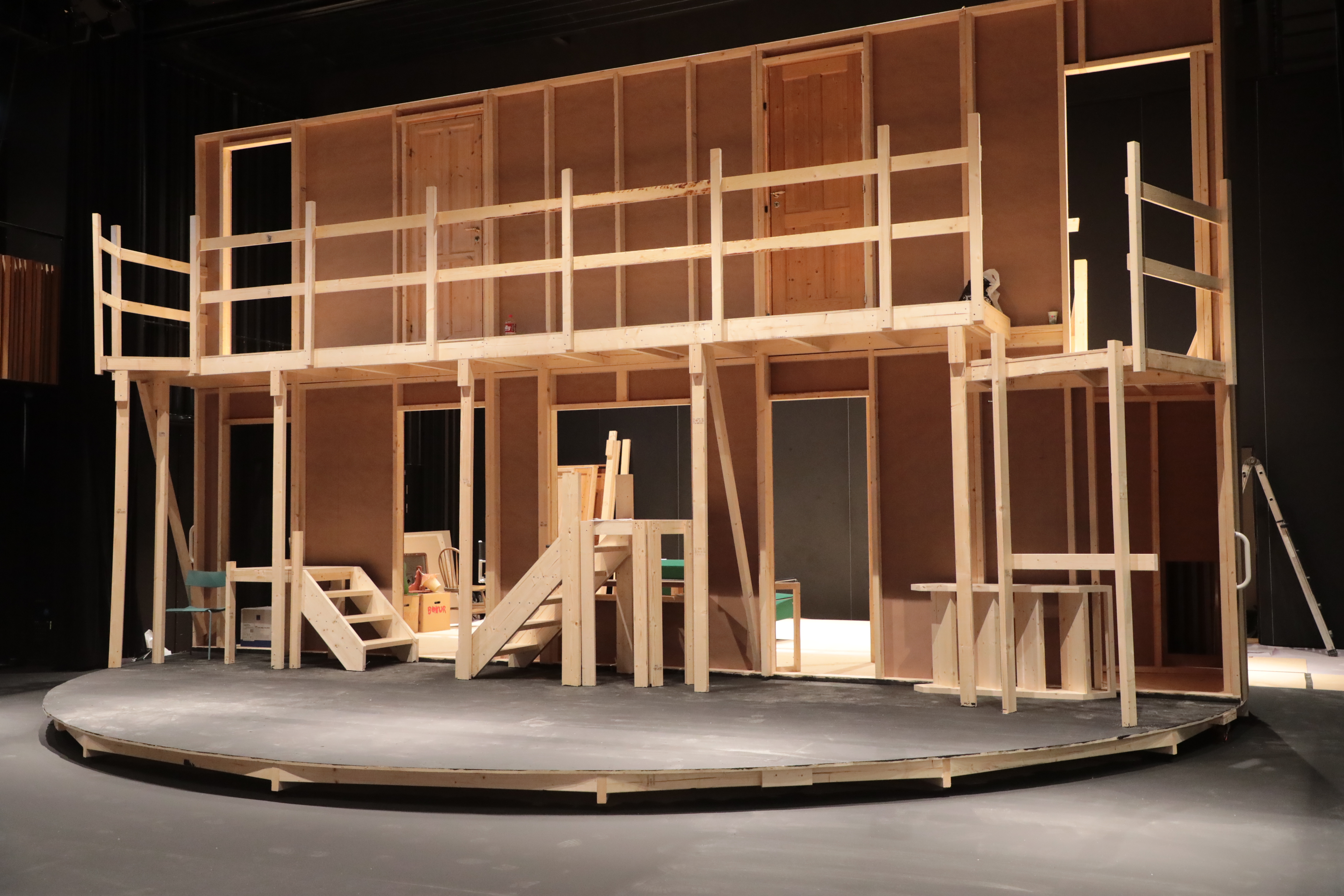 Ein frálík løta frammanfyri stóra pallin, ið er undir byggjan fyri stóra leikinum ”Friður á Pallinum”, sum verður sýndur seinni í mánaðinum – ein rulliscena á 9 m í diametur, sum Edward Fuglø og Tekniski skúli skipa fyri.
